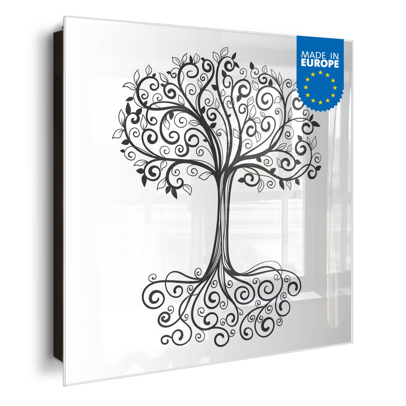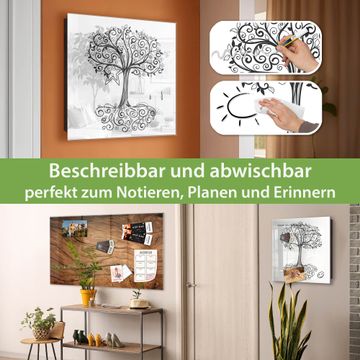 Bringe Ordnung und Eleganz in deinen Eingangsbereich mit dem banjado Schlüsselkasten Motiv Motiv Baum des Lebens. Die moderne Schlüsselbox kombiniert funktionales Design mit hochwertiger Verarbeitung und wird so zu einem echten Hingucker in Flur, Büro oder Ferienwohnung. ✅ Stilvolle Schlüsselaufbewahrung mit Glasfront im Motiv Motiv Baum des Lebens Der Design-Schlüsselkasten Motiv Motiv Baum des Lebens bietet Platz für bis zu 50 Schlüssel, die auf 5 stabilen Reihen mit je 10 Haken übersichtlich verstaut werden. Mit seinen kompakten Maßen von 30 x 30 x 5 cm passt die Schlüsselbox perfekt auch in kleinere Räume. Der schwarz lackierte Stahlkorpus mit rechts angeschlagenem Türscharnier harmoniert mit der Glasfront und fügt sich nahtlos in jedes Wohnambiente ein. Ob als Schlüsselorganizer für Zuhause oder als praktische Lösung für Büros, Praxen und Gewerbe, der banjado Schlüsselkasten sorgt für Ordnung und Übersicht. Dank der magnetischen, mit Kreidestiften beschreibbaren Glasfront kannst du Notizen anheften oder Termine direkt auf der Oberfläche festhalten. Die Schlüsselbox Motiv Motiv Baum des Lebens zur Wandmontage wird inklusive Befestigungsmaterial geliefert und ist schnell angebracht. So hast du deine Schlüssel jederzeit griffbereit und zugleich stilvoll verstaut. Mit diesem banjado Schlüsselkasten Motiv Motiv Baum des Lebens kombinierst du praktische Aufbewahrung mit stilvollem Wohndesign. Ob privat oder geschäftlich, die Schlüsselbox sorgt für mehr Ordnung, Übersicht und ein wohnliches Ambiente.Vorteile im Überblick