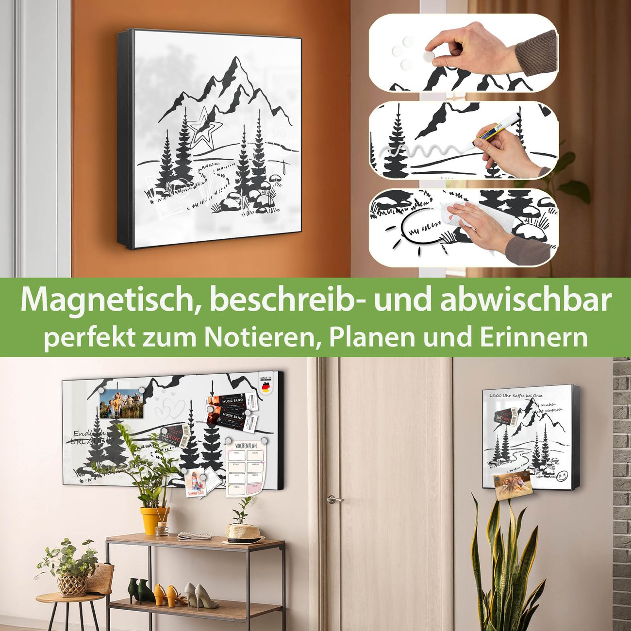 ✅ Magnetisch und mit Kreidestift beschreibbar, rechts angeschlagene TürOrdnung und Design in einem