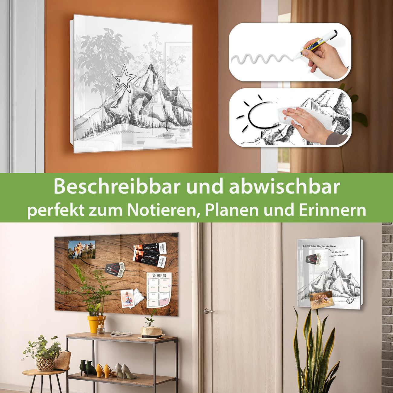 ✅ Magnetisch und mit Kreidestift beschreibbar, gehärtetes Glas, rechts angeschlagene TürOrdnung und Design in einem