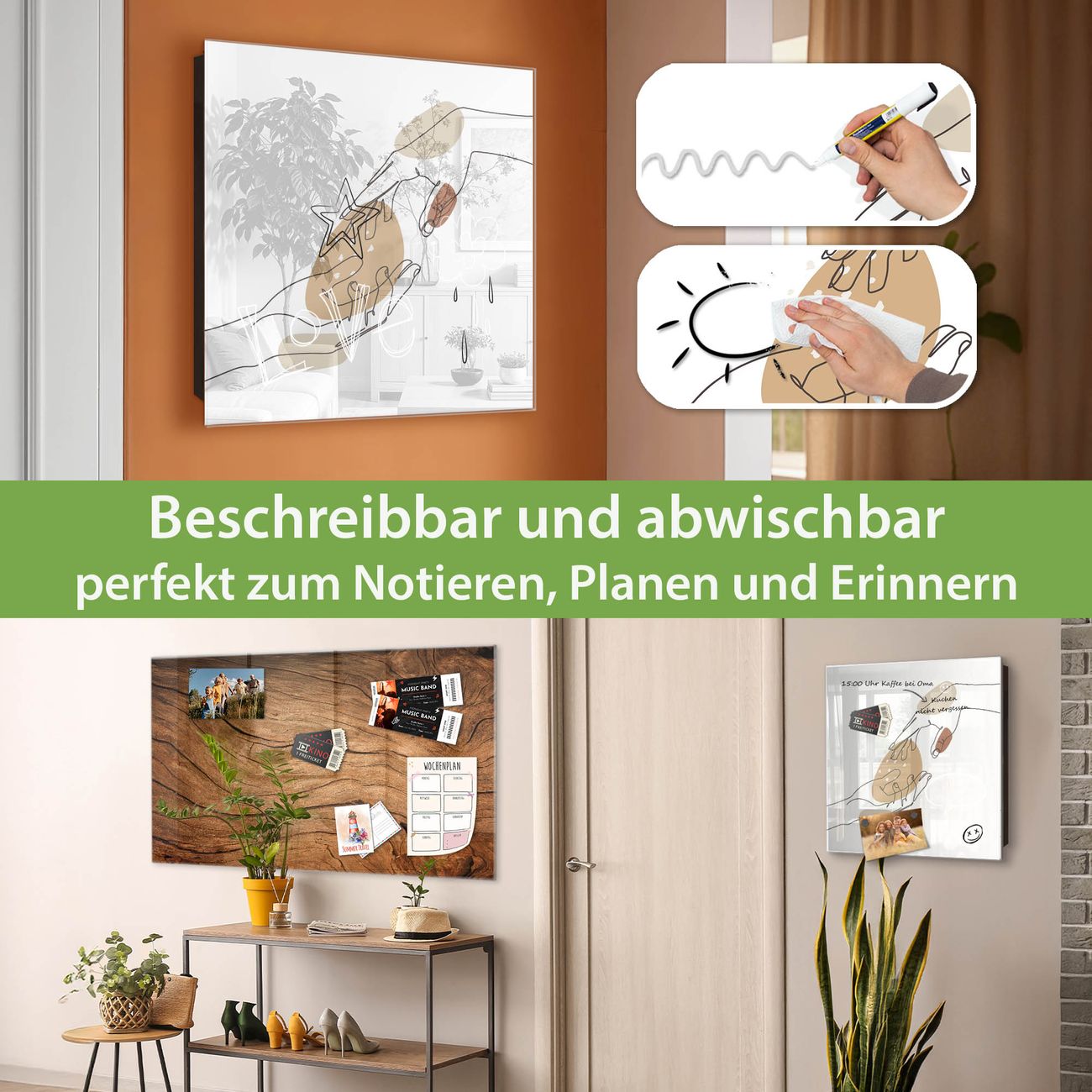 Bringe Ordnung und Eleganz in deinen Eingangsbereich mit dem banjado Schlüsselkasten Motiv Motiv Berührende Verbindung. Die moderne Schlüsselbox kombiniert funktionales Design mit hochwertiger Verarbeitung und wird so zu einem echten Hingucker in Flur, Büro oder Ferienwohnung. ✅ Stilvolle Schlüsselaufbewahrung mit Glasfront im Motiv Motiv Berührende Verbindung Der Design-Schlüsselkasten Motiv Motiv Berührende Verbindung bietet Platz für bis zu 50 Schlüssel, die auf 5 stabilen Reihen mit je 10 Haken übersichtlich verstaut werden. Mit seinen kompakten Maßen von 30 x 30 x 5 cm passt die Schlüsselbox perfekt auch in kleinere Räume. Der schwarz lackierte Stahlkorpus mit rechts angeschlagenem Türscharnier harmoniert mit der Glasfront und fügt sich nahtlos in jedes Wohnambiente ein. Ob als Schlüsselorganizer für Zuhause oder als praktische Lösung für Büros, Praxen und Gewerbe, der banjado Schlüsselkasten sorgt für Ordnung und Übersicht. Dank der magnetischen, mit Kreidestiften beschreibbaren Glasfront kannst du Notizen anheften oder Termine direkt auf der Oberfläche festhalten. Die Schlüsselbox Motiv Motiv Berührende Verbindung zur Wandmontage wird inklusive Befestigungsmaterial geliefert und ist schnell angebracht. So hast du deine Schlüssel jederzeit griffbereit und zugleich stilvoll verstaut. Mit diesem banjado Schlüsselkasten Motiv Motiv Berührende Verbindung kombinierst du praktische Aufbewahrung mit stilvollem Wohndesign. Ob privat oder geschäftlich, die Schlüsselbox sorgt für mehr Ordnung, Übersicht und ein wohnliches Ambiente.Vorteile im Überblick