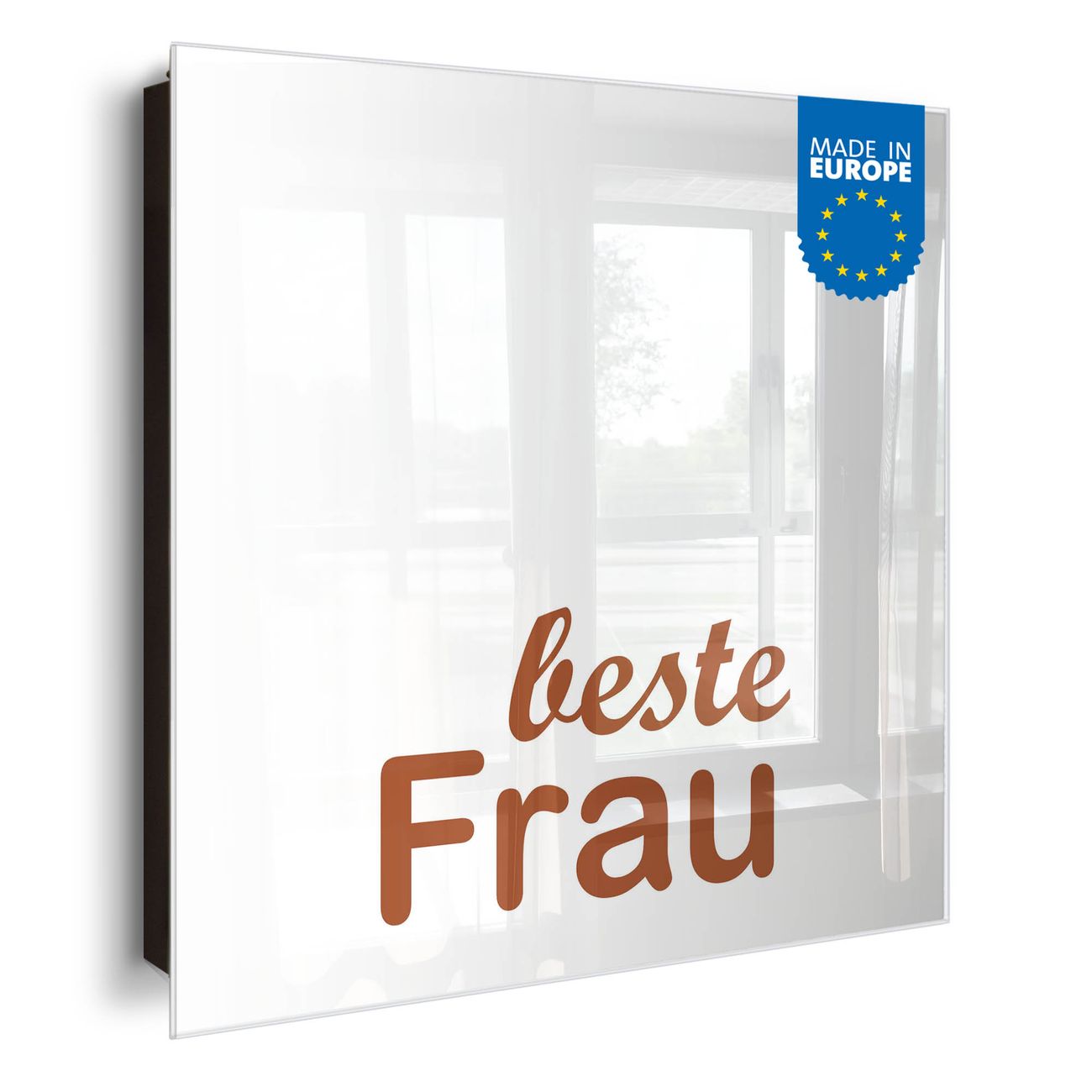 Bringe Ordnung und Eleganz in deinen Eingangsbereich mit dem banjado Schlüsselkasten Motiv Motiv beste Frau 2. Die moderne Schlüsselbox kombiniert funktionales Design mit hochwertiger Verarbeitung und wird so zu einem echten Hingucker in Flur, Büro oder Ferienwohnung. ✅ Stilvolle Schlüsselaufbewahrung mit Glasfront im Motiv Motiv beste Frau 2 Der Design-Schlüsselkasten Motiv Motiv beste Frau 2 bietet Platz für bis zu 50 Schlüssel, die auf 5 stabilen Reihen mit je 10 Haken übersichtlich verstaut werden. Mit seinen kompakten Maßen von 30 x 30 x 5 cm passt die Schlüsselbox perfekt auch in kleinere Räume. Der schwarz lackierte Stahlkorpus mit rechts angeschlagenem Türscharnier harmoniert mit der Glasfront und fügt sich nahtlos in jedes Wohnambiente ein. Ob als Schlüsselorganizer für Zuhause oder als praktische Lösung für Büros, Praxen und Gewerbe, der banjado Schlüsselkasten sorgt für Ordnung und Übersicht. Dank der magnetischen, mit Kreidestiften beschreibbaren Glasfront kannst du Notizen anheften oder Termine direkt auf der Oberfläche festhalten. Die Schlüsselbox Motiv Motiv beste Frau 2 zur Wandmontage wird inklusive Befestigungsmaterial geliefert und ist schnell angebracht. So hast du deine Schlüssel jederzeit griffbereit und zugleich stilvoll verstaut. Mit diesem banjado Schlüsselkasten Motiv Motiv beste Frau 2 kombinierst du praktische Aufbewahrung mit stilvollem Wohndesign. Ob privat oder geschäftlich, die Schlüsselbox sorgt für mehr Ordnung, Übersicht und ein wohnliches Ambiente.Vorteile im Überblick