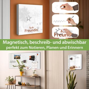 Bringe Ordnung und Eleganz in deinen Eingangsbereich mit dem banjado Schlüsselkasten Motiv Motiv beste Freundin 2. Die moderne Schlüsselbox kombiniert funktionales Design mit hochwertiger Verarbeitung und wird so zu einem echten Hingucker in Flur, Büro oder Ferienwohnung. ✅ Stilvolle Schlüsselaufbewahrung mit Motiv Motiv beste Freundin 2 Der Design-Schlüsselkasten Motiv Motiv beste Freundin 2 bietet Platz für bis zu 32 Schlüssel, die auf 4 stabilen Reihen mit je 8 Haken übersichtlich verstaut werden. Mit seinen kompakten Maßen von 30 x 30 x 5 cm passt die Schlüsselbox perfekt auch in kleinere Räume. Der weiß lackierte Stahlkorpus mit links angeschlagenem Türscharnier harmoniert mit gedruckten Folie auf der Front und fügt sich nahtlos in jedes Wohnambiente ein. Ob als Schlüsselorganizer für Zuhause oder als praktische Lösung für Büros, Praxen und Gewerbe, der banjado Schlüsselkasten sorgt für Ordnung und Übersicht. Dank der magnetischen, mit Kreidestiften beschreibbaren Folie auf der Front kannst du Notizen anheften oder Termine direkt auf der Oberfläche festhalten. Die Schlüsselbox Motiv Motiv beste Freundin 2 zur Wandmontage wird inklusive Befestigungsmaterial geliefert und ist schnell angebracht. So hast du deine Schlüssel jederzeit griffbereit und zugleich stilvoll verstaut. Mit diesem banjado Schlüsselkasten Motiv Motiv beste Freundin 2 kombinierst du praktische Aufbewahrung mit stilvollem Wohndesign. Ob privat oder geschäftlich, die Schlüsselbox sorgt für mehr Ordnung, Übersicht und ein wohnliches Ambiente.Vorteile im Überblick