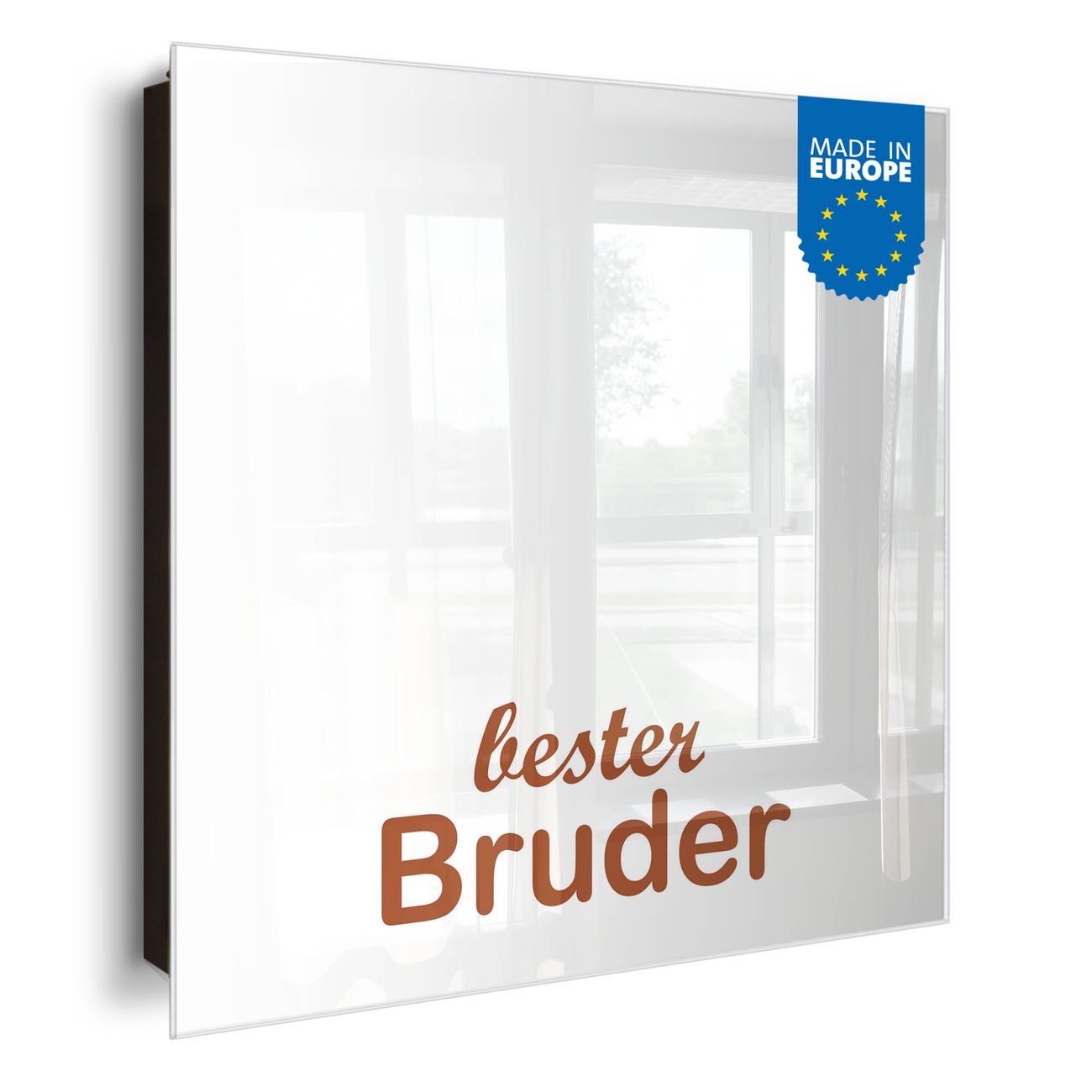 Bringe Ordnung und Eleganz in deinen Eingangsbereich mit dem banjado Schlüsselkasten Motiv Motiv bester Bruder 2. Die moderne Schlüsselbox kombiniert funktionales Design mit hochwertiger Verarbeitung und wird so zu einem echten Hingucker in Flur, Büro oder Ferienwohnung. ✅ Stilvolle Schlüsselaufbewahrung mit Glasfront im Motiv Motiv bester Bruder 2 Der Design-Schlüsselkasten Motiv Motiv bester Bruder 2 bietet Platz für bis zu 50 Schlüssel, die auf 5 stabilen Reihen mit je 10 Haken übersichtlich verstaut werden. Mit seinen kompakten Maßen von 30 x 30 x 5 cm passt die Schlüsselbox perfekt auch in kleinere Räume. Der schwarz lackierte Stahlkorpus mit rechts angeschlagenem Türscharnier harmoniert mit der Glasfront und fügt sich nahtlos in jedes Wohnambiente ein. Ob als Schlüsselorganizer für Zuhause oder als praktische Lösung für Büros, Praxen und Gewerbe, der banjado Schlüsselkasten sorgt für Ordnung und Übersicht. Dank der magnetischen, mit Kreidestiften beschreibbaren Glasfront kannst du Notizen anheften oder Termine direkt auf der Oberfläche festhalten. Die Schlüsselbox Motiv Motiv bester Bruder 2 zur Wandmontage wird inklusive Befestigungsmaterial geliefert und ist schnell angebracht. So hast du deine Schlüssel jederzeit griffbereit und zugleich stilvoll verstaut. Mit diesem banjado Schlüsselkasten Motiv Motiv bester Bruder 2 kombinierst du praktische Aufbewahrung mit stilvollem Wohndesign. Ob privat oder geschäftlich, die Schlüsselbox sorgt für mehr Ordnung, Übersicht und ein wohnliches Ambiente.Vorteile im Überblick