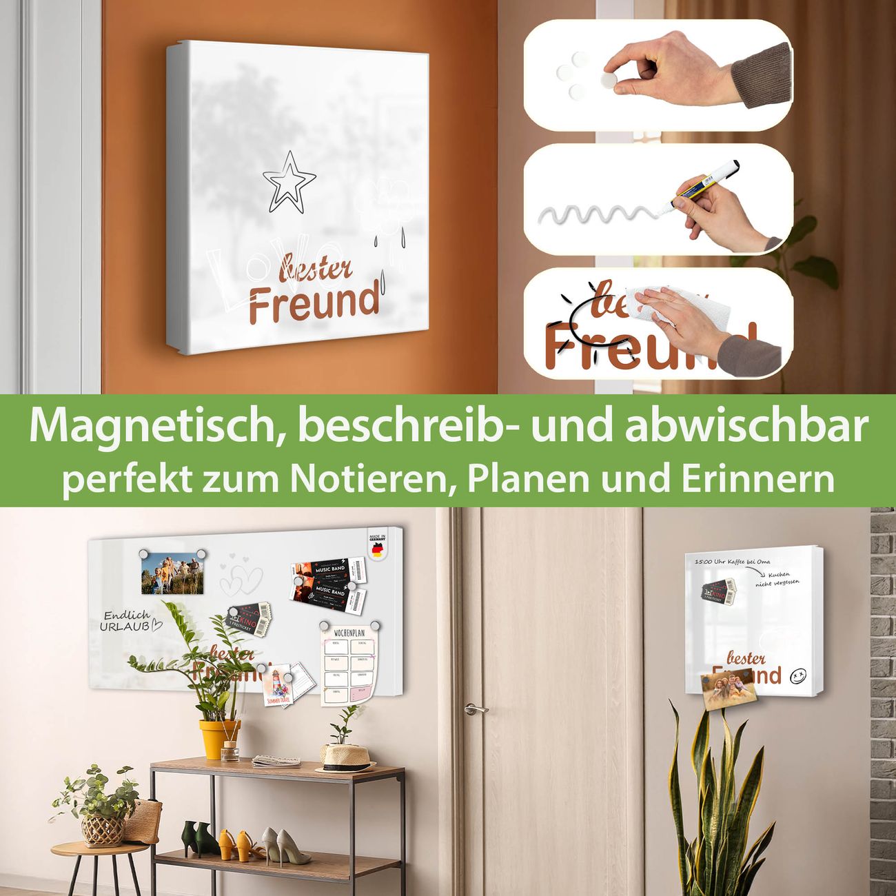 ✅ Magnetisch und mit Kreidestift beschreibbar, links angeschlagene TürOrdnung und Design in einem