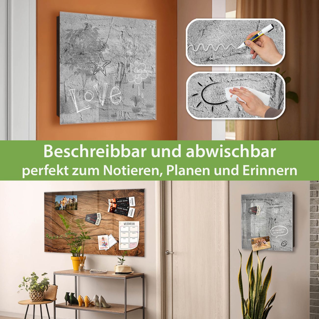 ✅ Magnetisch und mit Kreidestift beschreibbar, gehärtetes Glas, links angeschlagene TürOrdnung und Design in einem