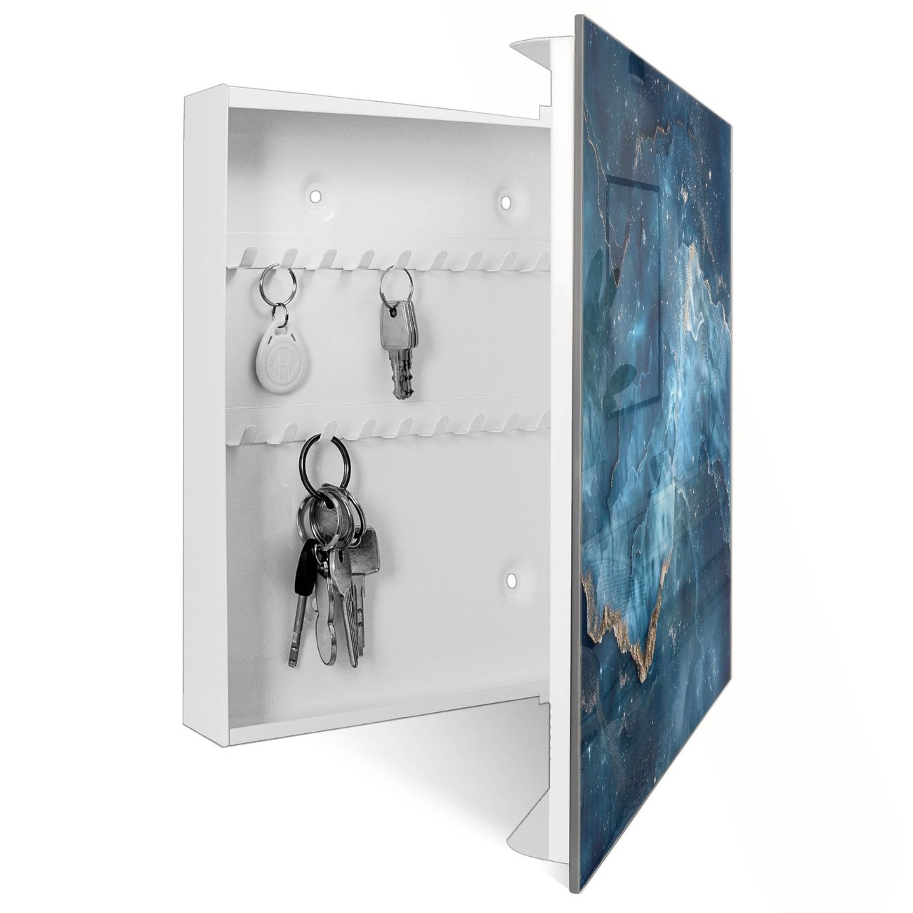 Schlüsselkasten Glas Motiv Blauer Marmor mit Gold 1