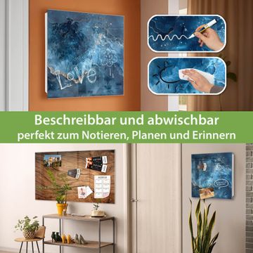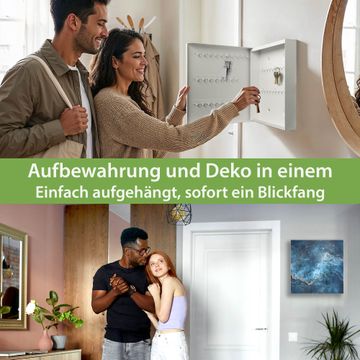 Bringe Ordnung und Eleganz in deinen Eingangsbereich mit dem banjado Schlüsselkasten Motiv Blauer Marmor mit Gold 1. Die moderne Schlüsselbox kombiniert funktionales Design mit hochwertiger Verarbeitung und wird so zu einem echten Hingucker in Flur, Büro oder Ferienwohnung. ✅ Stilvolle Schlüsselaufbewahrung mit Glasfront im Motiv Motiv Blauer Marmor mit Gold 1 Der Design-Schlüsselkasten Motiv Blauer Marmor mit Gold 1 bietet Platz für bis zu 50 Schlüssel, die auf 5 stabilen Reihen mit je 10 Haken übersichtlich verstaut werden. Mit seinen kompakten Maßen von 30 x 30 x 5 cm passt die Schlüsselbox perfekt auch in kleinere Räume. Der weiß lackierte Stahlkorpus mit rechts angeschlagenem Türscharnier harmoniert mit der Glasfront und fügt sich nahtlos in jedes Wohnambiente ein. Ob als Schlüsselorganizer für Zuhause oder als praktische Lösung für Büros, Praxen und Gewerbe, der banjado Schlüsselkasten sorgt für Ordnung und Übersicht. Dank der magnetischen, mit Kreidestiften beschreibbaren Glasfront kannst du Notizen anheften oder Termine direkt auf der Oberfläche festhalten. Die Schlüsselbox Motiv Blauer Marmor mit Gold 1 zur Wandmontage wird inklusive Befestigungsmaterial geliefert und ist schnell angebracht. So hast du deine Schlüssel jederzeit griffbereit und zugleich stilvoll verstaut. Mit diesem banjado Schlüsselkasten Motiv Blauer Marmor mit Gold 1 kombinierst du praktische Aufbewahrung mit stilvollem Wohndesign. Ob privat oder geschäftlich, die Schlüsselbox sorgt für mehr Ordnung, Übersicht und ein wohnliches Ambiente.Vorteile im Überblick