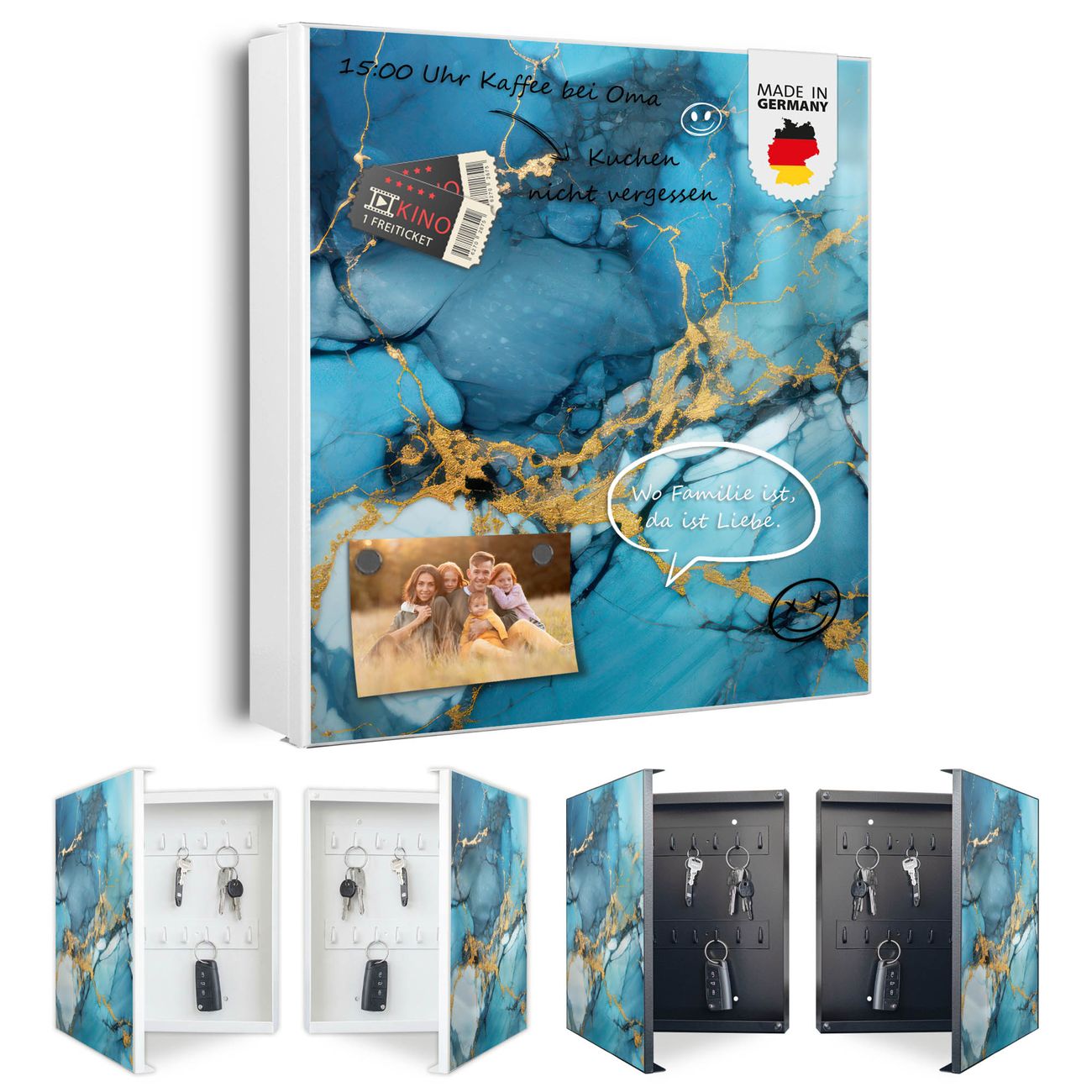 Schlüsselkasten Motiv Blauer Marmor mit Gold 2