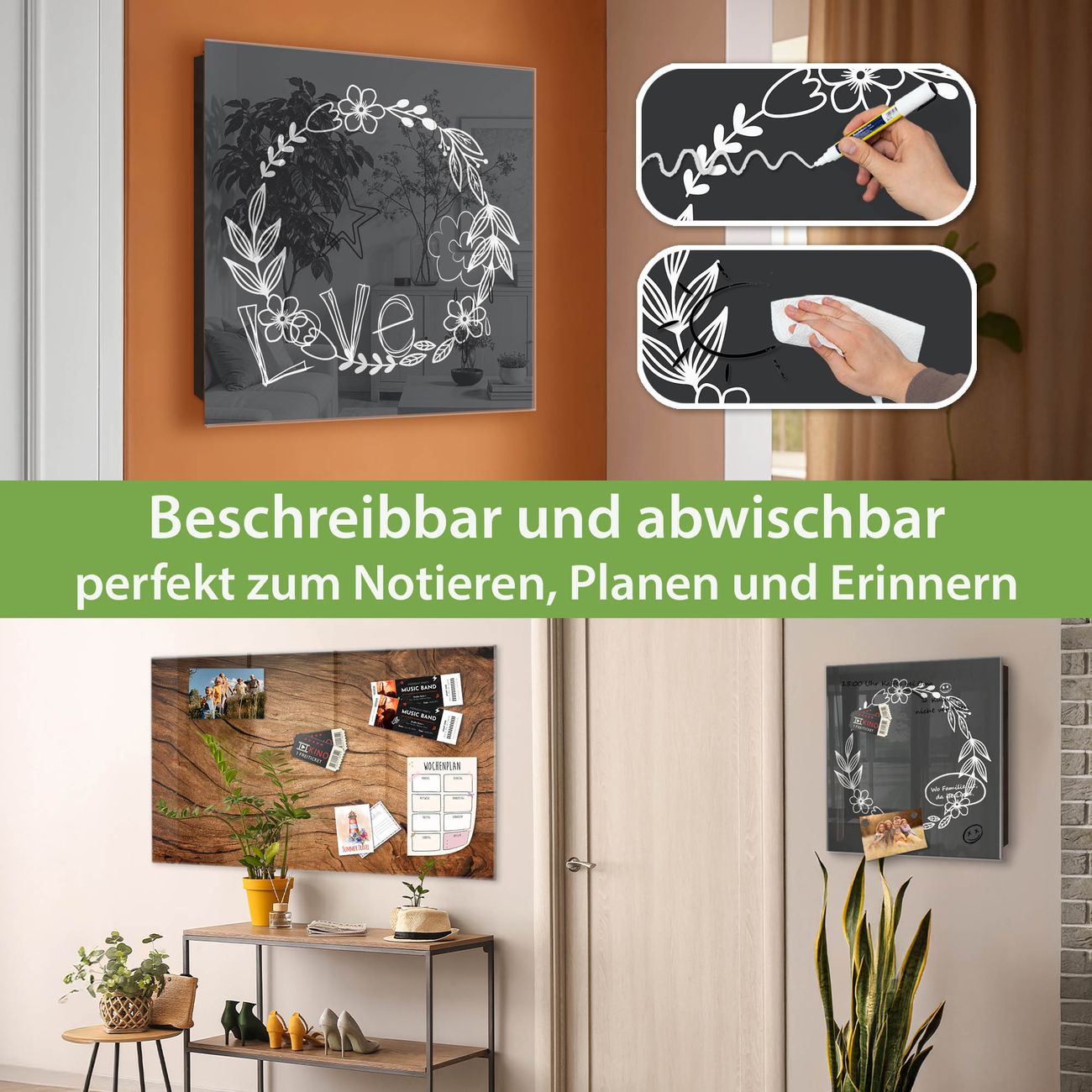 ✅ Magnetisch und mit Kreidestift beschreibbar, gehärtetes Glas, rechts angeschlagene TürOrdnung und Design in einem