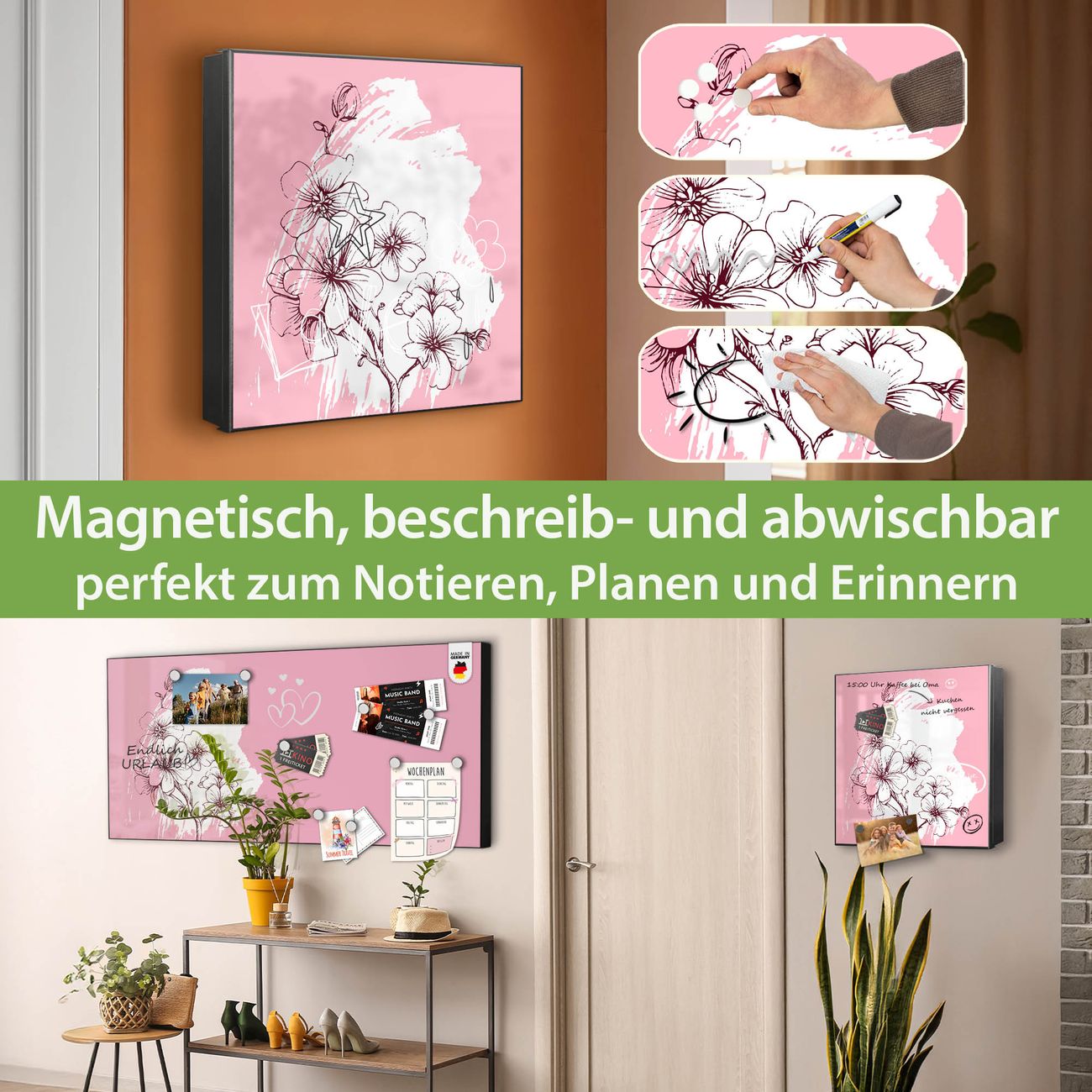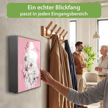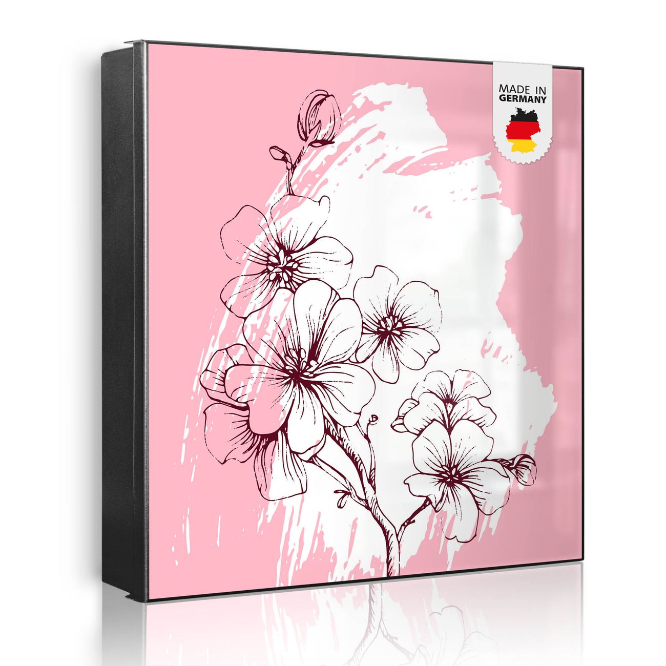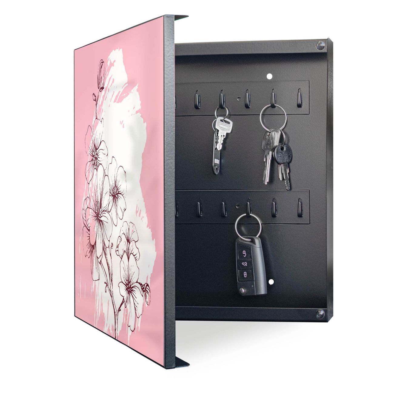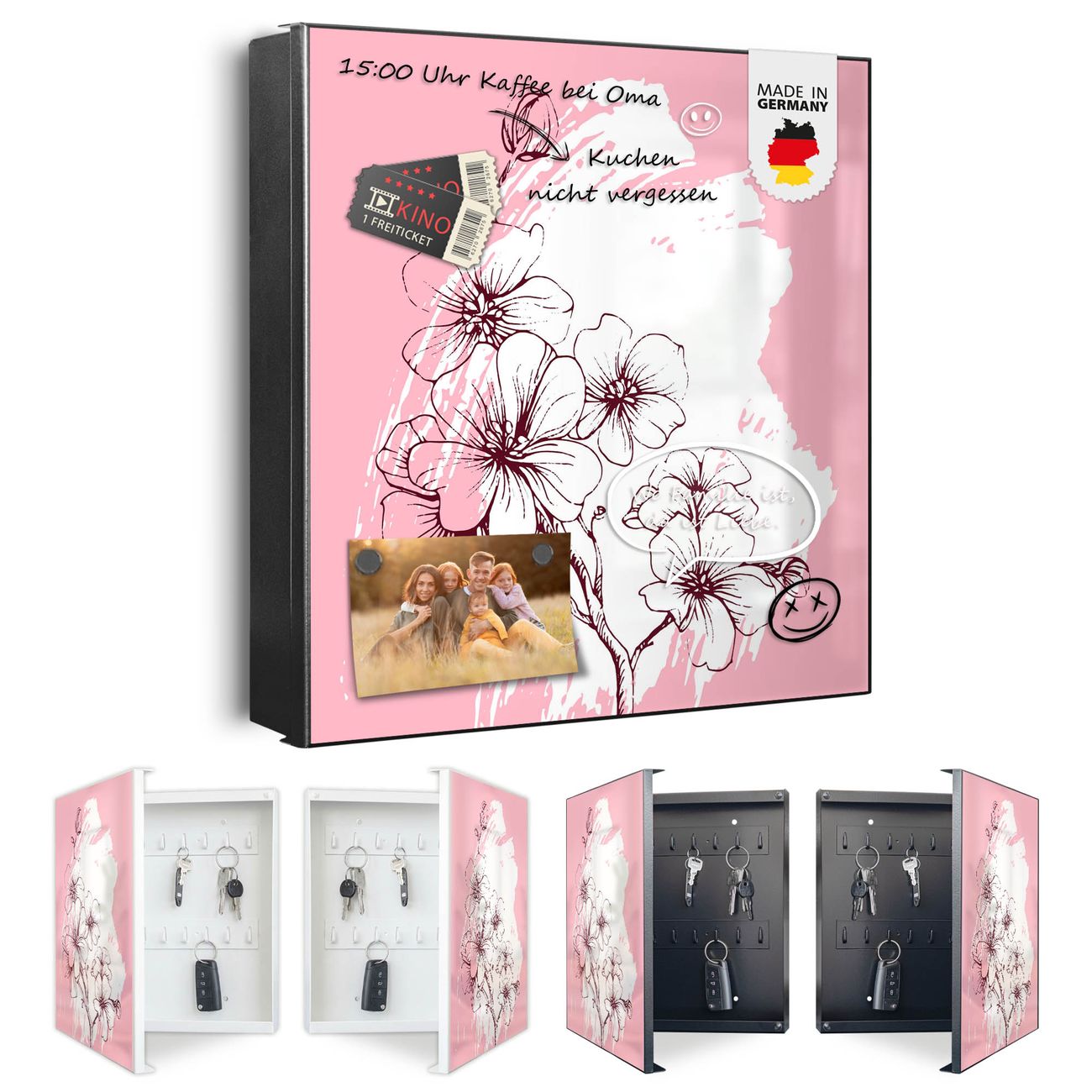 Bringe Ordnung und Eleganz in deinen Eingangsbereich mit dem banjado Schlüsselkasten Motiv Motiv Blütenpracht. Die moderne Schlüsselbox kombiniert funktionales Design mit hochwertiger Verarbeitung und wird so zu einem echten Hingucker in Flur, Büro oder Ferienwohnung. ✅ Stilvolle Schlüsselaufbewahrung mit Motiv Motiv Blütenpracht Der Design-Schlüsselkasten Motiv Motiv Blütenpracht bietet Platz für bis zu 32 Schlüssel, die auf 4 stabilen Reihen mit je 8 Haken übersichtlich verstaut werden. Mit seinen kompakten Maßen von 30 x 30 x 5 cm passt die Schlüsselbox perfekt auch in kleinere Räume. Der schwarz lackierte Stahlkorpus mit links angeschlagenem Türscharnier harmoniert mit gedruckten Folie auf der Front und fügt sich nahtlos in jedes Wohnambiente ein. Ob als Schlüsselorganizer für Zuhause oder als praktische Lösung für Büros, Praxen und Gewerbe, der banjado Schlüsselkasten sorgt für Ordnung und Übersicht. Dank der magnetischen, mit Kreidestiften beschreibbaren Folie auf der Front kannst du Notizen anheften oder Termine direkt auf der Oberfläche festhalten. Die Schlüsselbox Motiv Motiv Blütenpracht zur Wandmontage wird inklusive Befestigungsmaterial geliefert und ist schnell angebracht. So hast du deine Schlüssel jederzeit griffbereit und zugleich stilvoll verstaut. Mit diesem banjado Schlüsselkasten Motiv Motiv Blütenpracht kombinierst du praktische Aufbewahrung mit stilvollem Wohndesign. Ob privat oder geschäftlich, die Schlüsselbox sorgt für mehr Ordnung, Übersicht und ein wohnliches Ambiente.Vorteile im Überblick