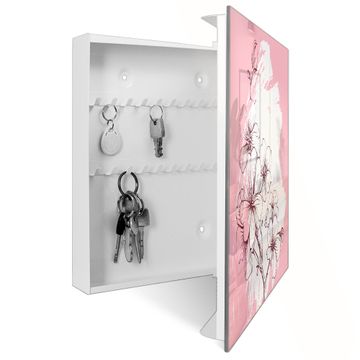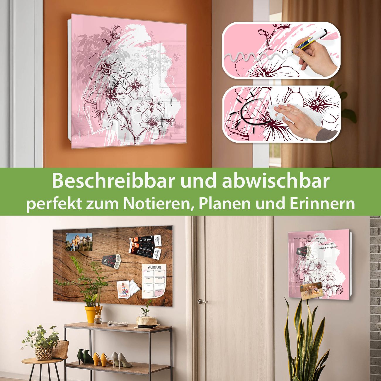 Bringe Ordnung und Eleganz in deinen Eingangsbereich mit dem banjado Schlüsselkasten Motiv Motiv Blütenpracht. Die moderne Schlüsselbox kombiniert funktionales Design mit hochwertiger Verarbeitung und wird so zu einem echten Hingucker in Flur, Büro oder Ferienwohnung. ✅ Stilvolle Schlüsselaufbewahrung mit Glasfront im Motiv Motiv Blütenpracht Der Design-Schlüsselkasten Motiv Motiv Blütenpracht bietet Platz für bis zu 50 Schlüssel, die auf 5 stabilen Reihen mit je 10 Haken übersichtlich verstaut werden. Mit seinen kompakten Maßen von 30 x 30 x 5 cm passt die Schlüsselbox perfekt auch in kleinere Räume. Der weiß lackierte Stahlkorpus mit rechts angeschlagenem Türscharnier harmoniert mit der Glasfront und fügt sich nahtlos in jedes Wohnambiente ein. Ob als Schlüsselorganizer für Zuhause oder als praktische Lösung für Büros, Praxen und Gewerbe, der banjado Schlüsselkasten sorgt für Ordnung und Übersicht. Dank der magnetischen, mit Kreidestiften beschreibbaren Glasfront kannst du Notizen anheften oder Termine direkt auf der Oberfläche festhalten. Die Schlüsselbox Motiv Motiv Blütenpracht zur Wandmontage wird inklusive Befestigungsmaterial geliefert und ist schnell angebracht. So hast du deine Schlüssel jederzeit griffbereit und zugleich stilvoll verstaut. Mit diesem banjado Schlüsselkasten Motiv Motiv Blütenpracht kombinierst du praktische Aufbewahrung mit stilvollem Wohndesign. Ob privat oder geschäftlich, die Schlüsselbox sorgt für mehr Ordnung, Übersicht und ein wohnliches Ambiente.Vorteile im Überblick