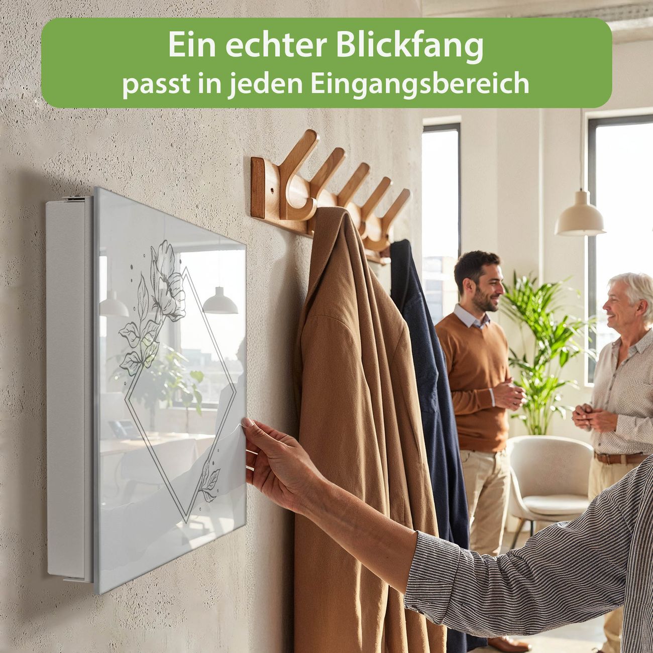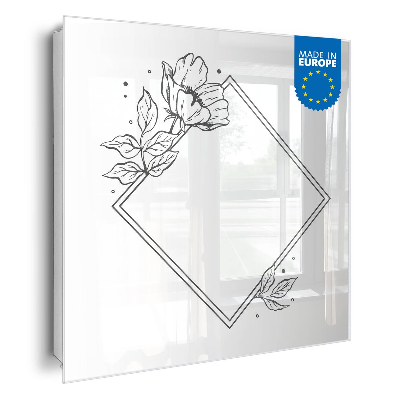 Bringe Ordnung und Eleganz in deinen Eingangsbereich mit dem banjado Schlüsselkasten Motiv Motiv Blütenrahmen. Die moderne Schlüsselbox kombiniert funktionales Design mit hochwertiger Verarbeitung und wird so zu einem echten Hingucker in Flur, Büro oder Ferienwohnung. ✅ Stilvolle Schlüsselaufbewahrung mit Glasfront im Motiv Motiv Blütenrahmen Der Design-Schlüsselkasten Motiv Motiv Blütenrahmen bietet Platz für bis zu 50 Schlüssel, die auf 5 stabilen Reihen mit je 10 Haken übersichtlich verstaut werden. Mit seinen kompakten Maßen von 30 x 30 x 5 cm passt die Schlüsselbox perfekt auch in kleinere Räume. Der weiß lackierte Stahlkorpus mit rechts angeschlagenem Türscharnier harmoniert mit der Glasfront und fügt sich nahtlos in jedes Wohnambiente ein. Ob als Schlüsselorganizer für Zuhause oder als praktische Lösung für Büros, Praxen und Gewerbe, der banjado Schlüsselkasten sorgt für Ordnung und Übersicht. Dank der magnetischen, mit Kreidestiften beschreibbaren Glasfront kannst du Notizen anheften oder Termine direkt auf der Oberfläche festhalten. Die Schlüsselbox Motiv Motiv Blütenrahmen zur Wandmontage wird inklusive Befestigungsmaterial geliefert und ist schnell angebracht. So hast du deine Schlüssel jederzeit griffbereit und zugleich stilvoll verstaut. Mit diesem banjado Schlüsselkasten Motiv Motiv Blütenrahmen kombinierst du praktische Aufbewahrung mit stilvollem Wohndesign. Ob privat oder geschäftlich, die Schlüsselbox sorgt für mehr Ordnung, Übersicht und ein wohnliches Ambiente.Vorteile im Überblick