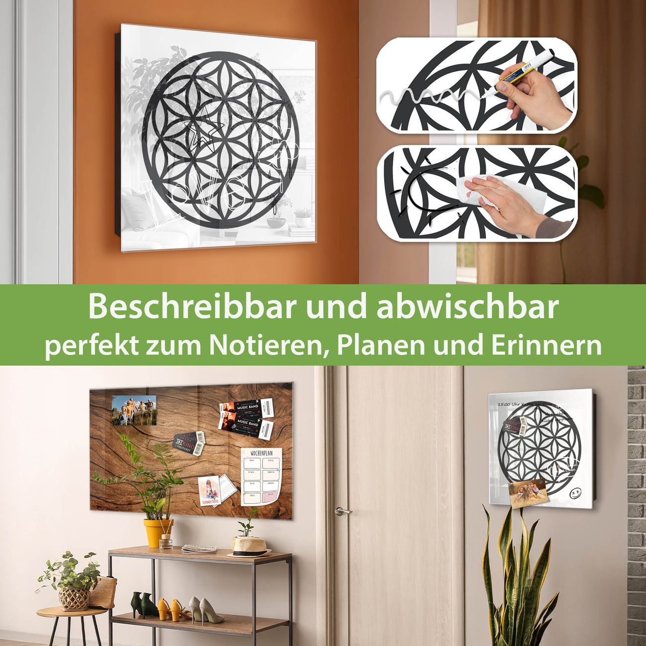 ✅ Magnetisch und mit Kreidestift beschreibbar, gehärtetes Glas, rechts angeschlagene TürOrdnung und Design in einem