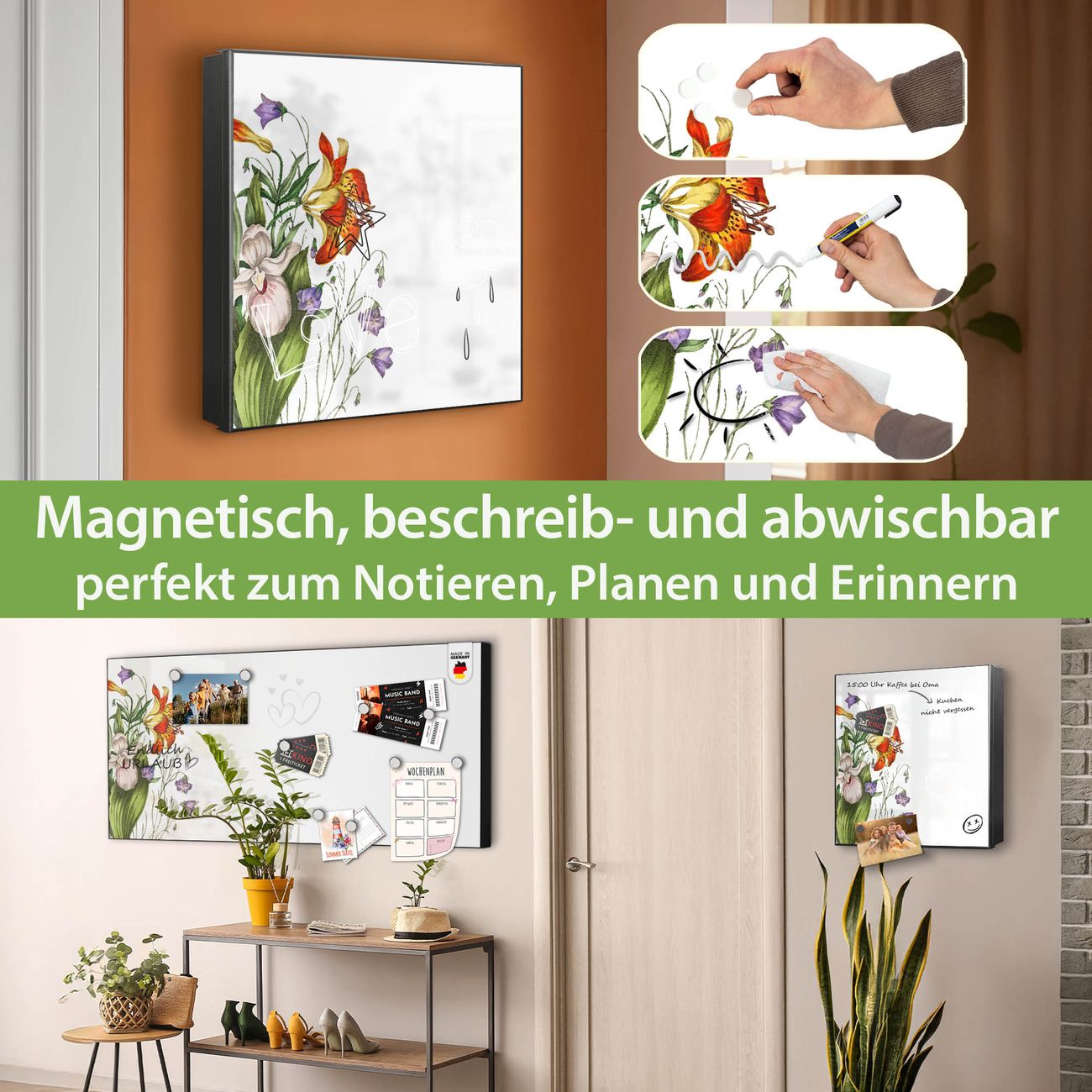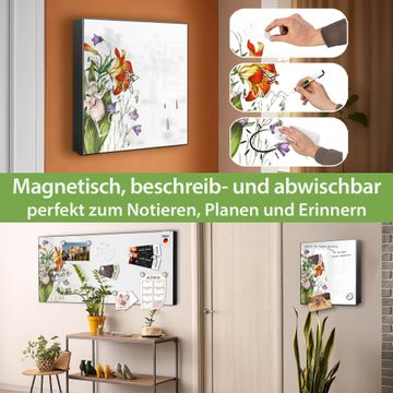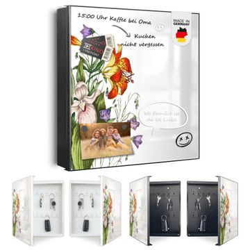 Bringe Ordnung und Eleganz in deinen Eingangsbereich mit dem banjado Schlüsselkasten Motiv Motiv Blumen Aquarell 2. Die moderne Schlüsselbox kombiniert funktionales Design mit hochwertiger Verarbeitung und wird so zu einem echten Hingucker in Flur, Büro oder Ferienwohnung. ✅ Stilvolle Schlüsselaufbewahrung mit Motiv Motiv Blumen Aquarell 2 Der Design-Schlüsselkasten Motiv Motiv Blumen Aquarell 2 bietet Platz für bis zu 32 Schlüssel, die auf 4 stabilen Reihen mit je 8 Haken übersichtlich verstaut werden. Mit seinen kompakten Maßen von 30 x 30 x 5 cm passt die Schlüsselbox perfekt auch in kleinere Räume. Der schwarz lackierte Stahlkorpus mit links angeschlagenem Türscharnier harmoniert mit gedruckten Folie auf der Front und fügt sich nahtlos in jedes Wohnambiente ein. Ob als Schlüsselorganizer für Zuhause oder als praktische Lösung für Büros, Praxen und Gewerbe, der banjado Schlüsselkasten sorgt für Ordnung und Übersicht. Dank der magnetischen, mit Kreidestiften beschreibbaren Folie auf der Front kannst du Notizen anheften oder Termine direkt auf der Oberfläche festhalten. Die Schlüsselbox Motiv Motiv Blumen Aquarell 2 zur Wandmontage wird inklusive Befestigungsmaterial geliefert und ist schnell angebracht. So hast du deine Schlüssel jederzeit griffbereit und zugleich stilvoll verstaut. Mit diesem banjado Schlüsselkasten Motiv Motiv Blumen Aquarell 2 kombinierst du praktische Aufbewahrung mit stilvollem Wohndesign. Ob privat oder geschäftlich, die Schlüsselbox sorgt für mehr Ordnung, Übersicht und ein wohnliches Ambiente.Vorteile im Überblick