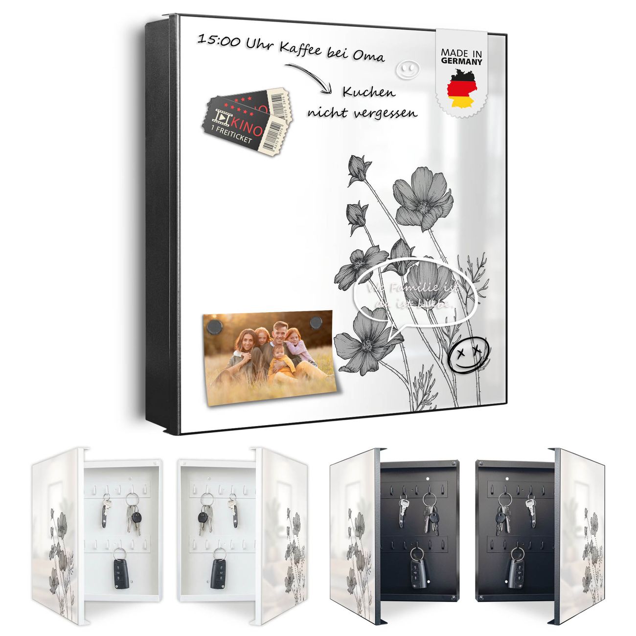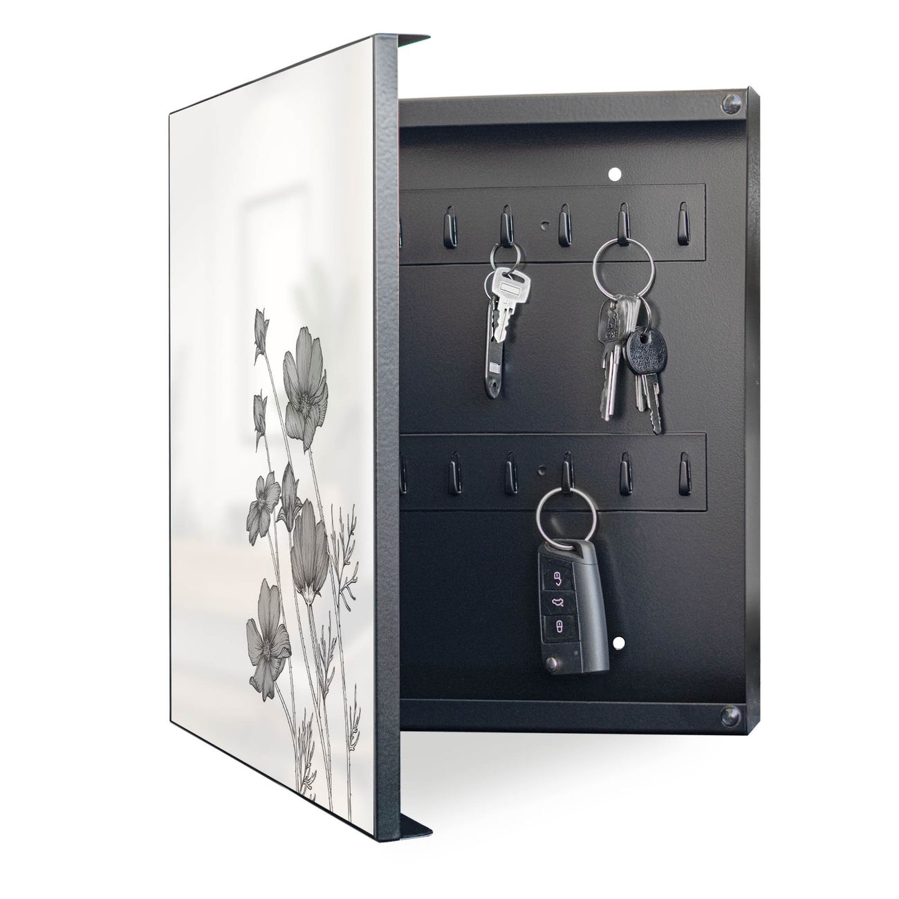 Schlüsselkasten Motiv Blumen in Schwarz-Weiß