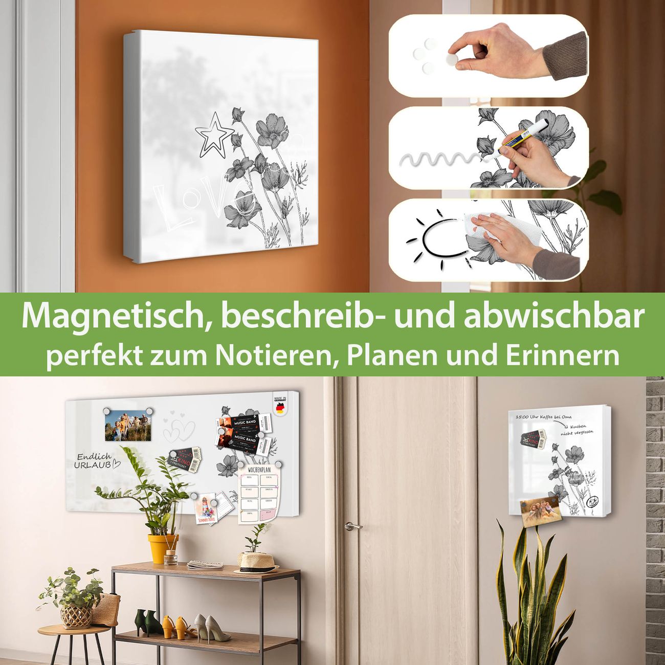 ✅ Magnetisch und mit Kreidestift beschreibbar, rechts angeschlagene TürOrdnung und Design in einem