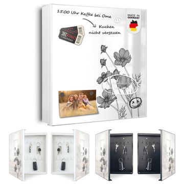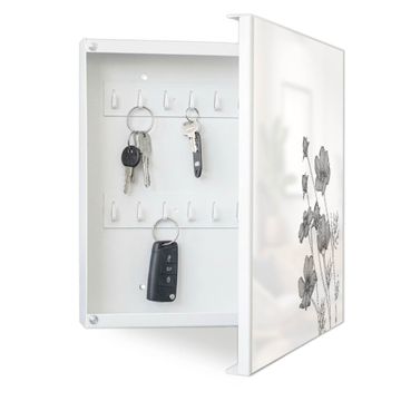 Schlüsselkasten Motiv Blumen in Schwarz-Weiß