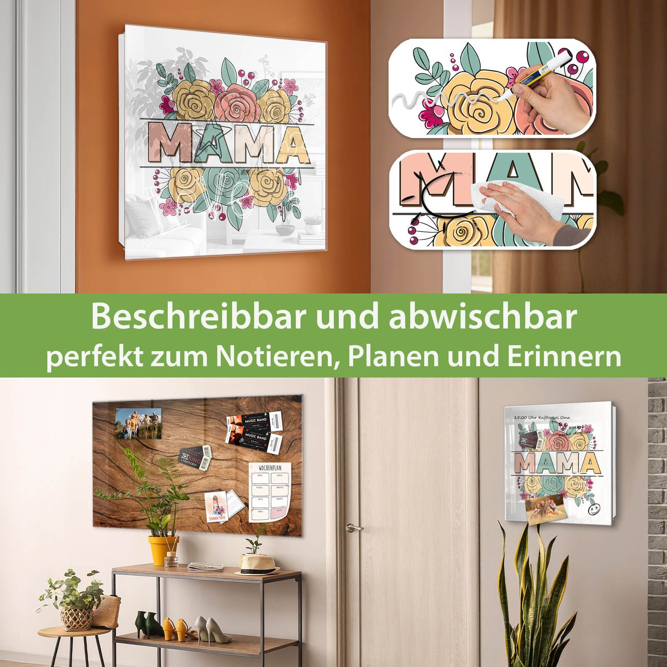 Bringe Ordnung und Eleganz in deinen Eingangsbereich mit dem banjado Schlüsselkasten Motiv Motiv Blumengruß für Mama. Die moderne Schlüsselbox kombiniert funktionales Design mit hochwertiger Verarbeitung und wird so zu einem echten Hingucker in Flur, Büro oder Ferienwohnung. ✅ Stilvolle Schlüsselaufbewahrung mit Glasfront im Motiv Motiv Blumengruß für Mama Der Design-Schlüsselkasten Motiv Motiv Blumengruß für Mama bietet Platz für bis zu 50 Schlüssel, die auf 5 stabilen Reihen mit je 10 Haken übersichtlich verstaut werden. Mit seinen kompakten Maßen von 30 x 30 x 5 cm passt die Schlüsselbox perfekt auch in kleinere Räume. Der weiß lackierte Stahlkorpus mit rechts angeschlagenem Türscharnier harmoniert mit der Glasfront und fügt sich nahtlos in jedes Wohnambiente ein. Ob als Schlüsselorganizer für Zuhause oder als praktische Lösung für Büros, Praxen und Gewerbe, der banjado Schlüsselkasten sorgt für Ordnung und Übersicht. Dank der magnetischen, mit Kreidestiften beschreibbaren Glasfront kannst du Notizen anheften oder Termine direkt auf der Oberfläche festhalten. Die Schlüsselbox Motiv Motiv Blumengruß für Mama zur Wandmontage wird inklusive Befestigungsmaterial geliefert und ist schnell angebracht. So hast du deine Schlüssel jederzeit griffbereit und zugleich stilvoll verstaut. Mit diesem banjado Schlüsselkasten Motiv Motiv Blumengruß für Mama kombinierst du praktische Aufbewahrung mit stilvollem Wohndesign. Ob privat oder geschäftlich, die Schlüsselbox sorgt für mehr Ordnung, Übersicht und ein wohnliches Ambiente.Vorteile im Überblick