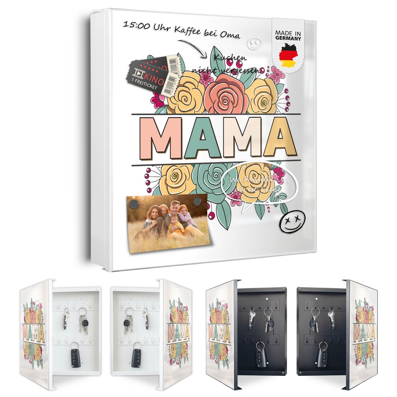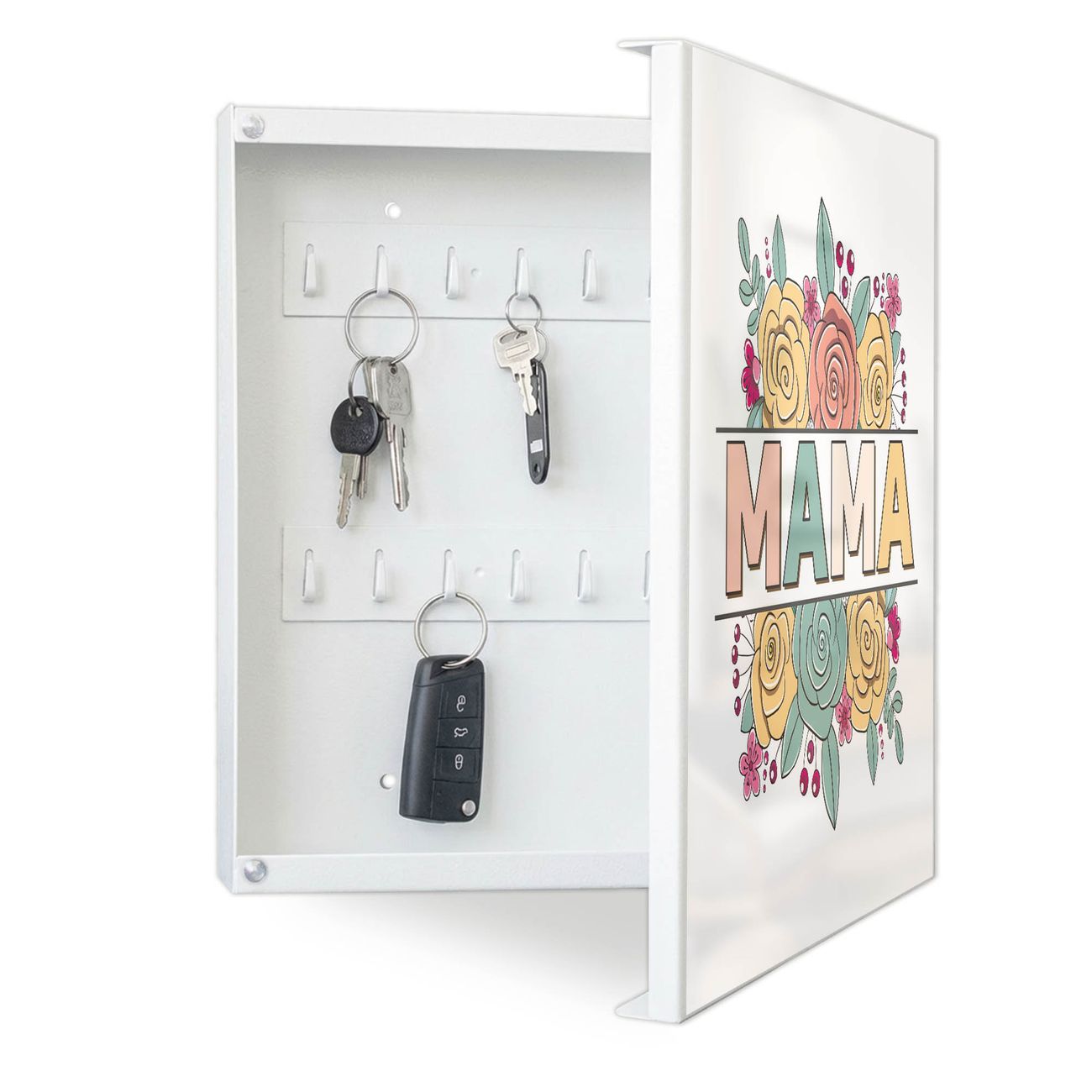 Bringe Ordnung und Eleganz in deinen Eingangsbereich mit dem banjado Schlüsselkasten Motiv Motiv Blumengruß für Mama. Die moderne Schlüsselbox kombiniert funktionales Design mit hochwertiger Verarbeitung und wird so zu einem echten Hingucker in Flur, Büro oder Ferienwohnung. ✅ Stilvolle Schlüsselaufbewahrung mit Motiv Motiv Blumengruß für Mama Der Design-Schlüsselkasten Motiv Motiv Blumengruß für Mama bietet Platz für bis zu 32 Schlüssel, die auf 4 stabilen Reihen mit je 8 Haken übersichtlich verstaut werden. Mit seinen kompakten Maßen von 30 x 30 x 5 cm passt die Schlüsselbox perfekt auch in kleinere Räume. Der weiß lackierte Stahlkorpus mit rechts angeschlagenem Türscharnier harmoniert mit gedruckten Folie auf der Front und fügt sich nahtlos in jedes Wohnambiente ein. Ob als Schlüsselorganizer für Zuhause oder als praktische Lösung für Büros, Praxen und Gewerbe, der banjado Schlüsselkasten sorgt für Ordnung und Übersicht. Dank der magnetischen, mit Kreidestiften beschreibbaren Folie auf der Front kannst du Notizen anheften oder Termine direkt auf der Oberfläche festhalten. Die Schlüsselbox Motiv Motiv Blumengruß für Mama zur Wandmontage wird inklusive Befestigungsmaterial geliefert und ist schnell angebracht. So hast du deine Schlüssel jederzeit griffbereit und zugleich stilvoll verstaut. Mit diesem banjado Schlüsselkasten Motiv Motiv Blumengruß für Mama kombinierst du praktische Aufbewahrung mit stilvollem Wohndesign. Ob privat oder geschäftlich, die Schlüsselbox sorgt für mehr Ordnung, Übersicht und ein wohnliches Ambiente.Vorteile im Überblick
