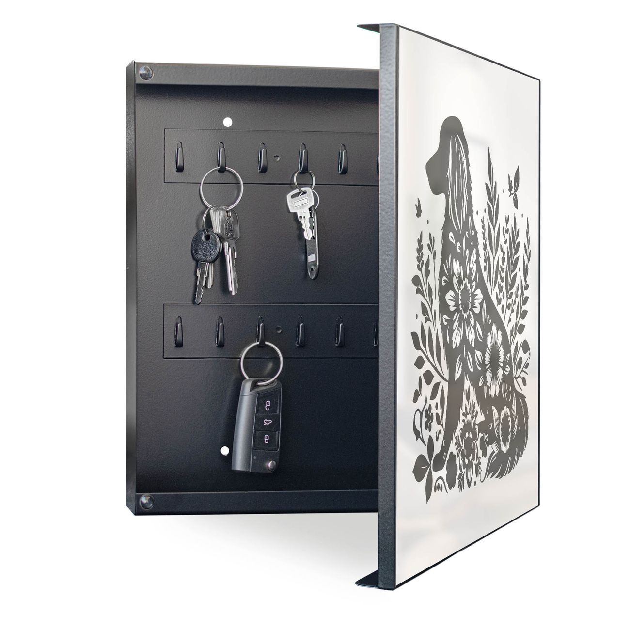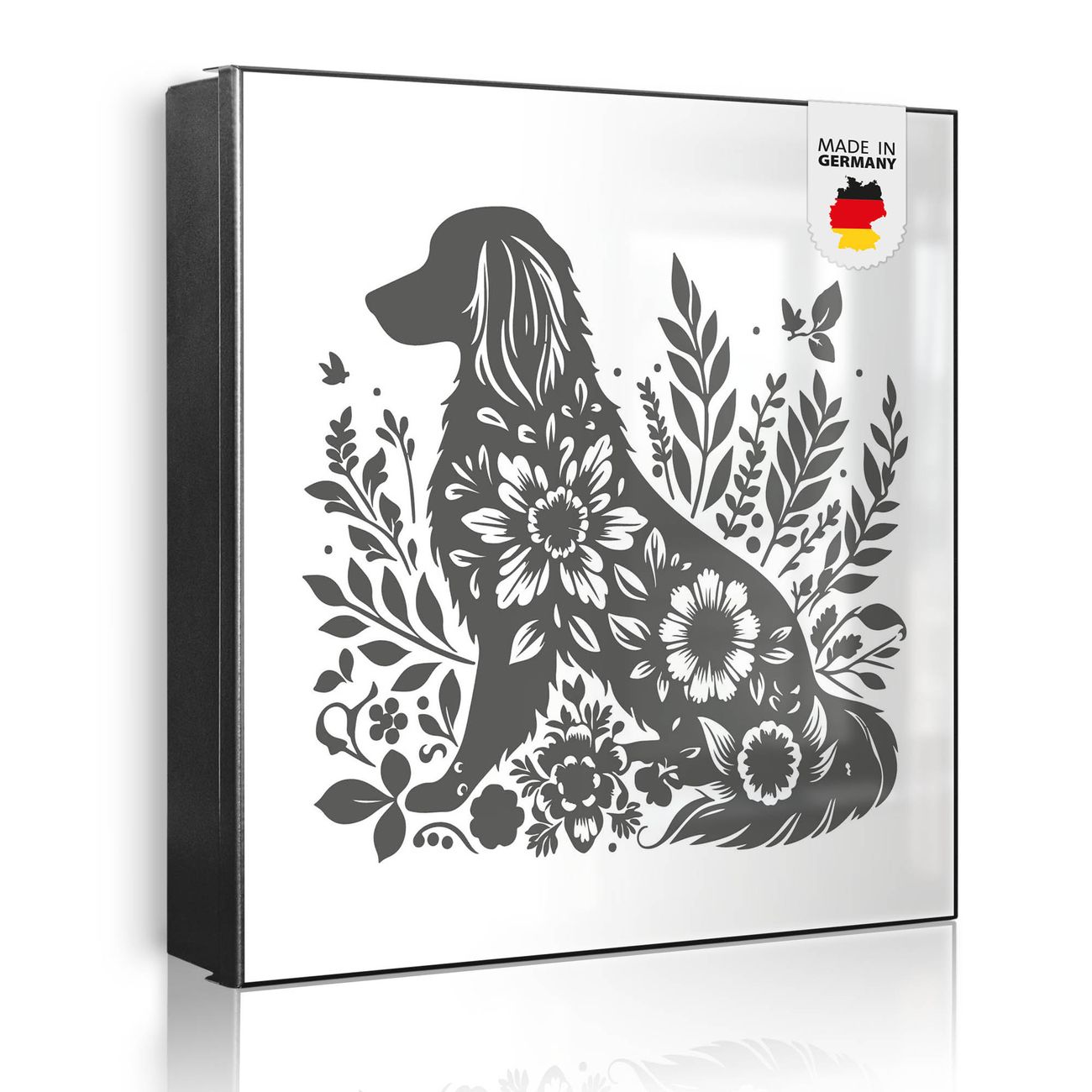 Schlüsselkasten Motiv Blumenhund Silhouette