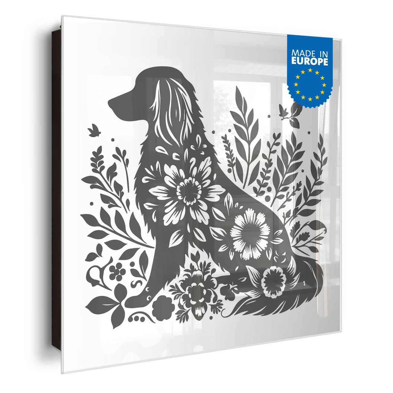 Schlüsselkasten Glas Motiv Blumenhund Silhouette