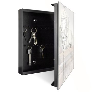 Bringe Ordnung und Eleganz in deinen Eingangsbereich mit dem banjado Schlüsselkasten Motiv Motiv Blumenlinie. Die moderne Schlüsselbox kombiniert funktionales Design mit hochwertiger Verarbeitung und wird so zu einem echten Hingucker in Flur, Büro oder Ferienwohnung. ✅ Stilvolle Schlüsselaufbewahrung mit Glasfront im Motiv Motiv Blumenlinie Der Design-Schlüsselkasten Motiv Motiv Blumenlinie bietet Platz für bis zu 50 Schlüssel, die auf 5 stabilen Reihen mit je 10 Haken übersichtlich verstaut werden. Mit seinen kompakten Maßen von 30 x 30 x 5 cm passt die Schlüsselbox perfekt auch in kleinere Räume. Der schwarz lackierte Stahlkorpus mit rechts angeschlagenem Türscharnier harmoniert mit der Glasfront und fügt sich nahtlos in jedes Wohnambiente ein. Ob als Schlüsselorganizer für Zuhause oder als praktische Lösung für Büros, Praxen und Gewerbe, der banjado Schlüsselkasten sorgt für Ordnung und Übersicht. Dank der magnetischen, mit Kreidestiften beschreibbaren Glasfront kannst du Notizen anheften oder Termine direkt auf der Oberfläche festhalten. Die Schlüsselbox Motiv Motiv Blumenlinie zur Wandmontage wird inklusive Befestigungsmaterial geliefert und ist schnell angebracht. So hast du deine Schlüssel jederzeit griffbereit und zugleich stilvoll verstaut. Mit diesem banjado Schlüsselkasten Motiv Motiv Blumenlinie kombinierst du praktische Aufbewahrung mit stilvollem Wohndesign. Ob privat oder geschäftlich, die Schlüsselbox sorgt für mehr Ordnung, Übersicht und ein wohnliches Ambiente.Vorteile im Überblick