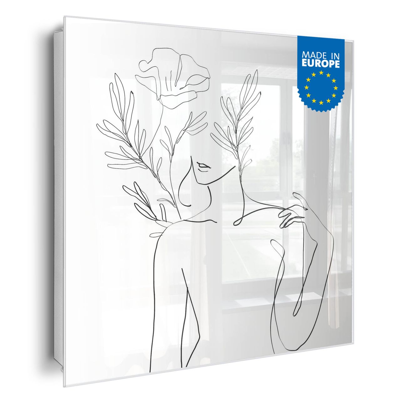 Bringe Ordnung und Eleganz in deinen Eingangsbereich mit dem banjado Schlüsselkasten Motiv Motiv Blumenlinie. Die moderne Schlüsselbox kombiniert funktionales Design mit hochwertiger Verarbeitung und wird so zu einem echten Hingucker in Flur, Büro oder Ferienwohnung. ✅ Stilvolle Schlüsselaufbewahrung mit Glasfront im Motiv Motiv Blumenlinie Der Design-Schlüsselkasten Motiv Motiv Blumenlinie bietet Platz für bis zu 50 Schlüssel, die auf 5 stabilen Reihen mit je 10 Haken übersichtlich verstaut werden. Mit seinen kompakten Maßen von 30 x 30 x 5 cm passt die Schlüsselbox perfekt auch in kleinere Räume. Der weiß lackierte Stahlkorpus mit rechts angeschlagenem Türscharnier harmoniert mit der Glasfront und fügt sich nahtlos in jedes Wohnambiente ein. Ob als Schlüsselorganizer für Zuhause oder als praktische Lösung für Büros, Praxen und Gewerbe, der banjado Schlüsselkasten sorgt für Ordnung und Übersicht. Dank der magnetischen, mit Kreidestiften beschreibbaren Glasfront kannst du Notizen anheften oder Termine direkt auf der Oberfläche festhalten. Die Schlüsselbox Motiv Motiv Blumenlinie zur Wandmontage wird inklusive Befestigungsmaterial geliefert und ist schnell angebracht. So hast du deine Schlüssel jederzeit griffbereit und zugleich stilvoll verstaut. Mit diesem banjado Schlüsselkasten Motiv Motiv Blumenlinie kombinierst du praktische Aufbewahrung mit stilvollem Wohndesign. Ob privat oder geschäftlich, die Schlüsselbox sorgt für mehr Ordnung, Übersicht und ein wohnliches Ambiente.Vorteile im Überblick
