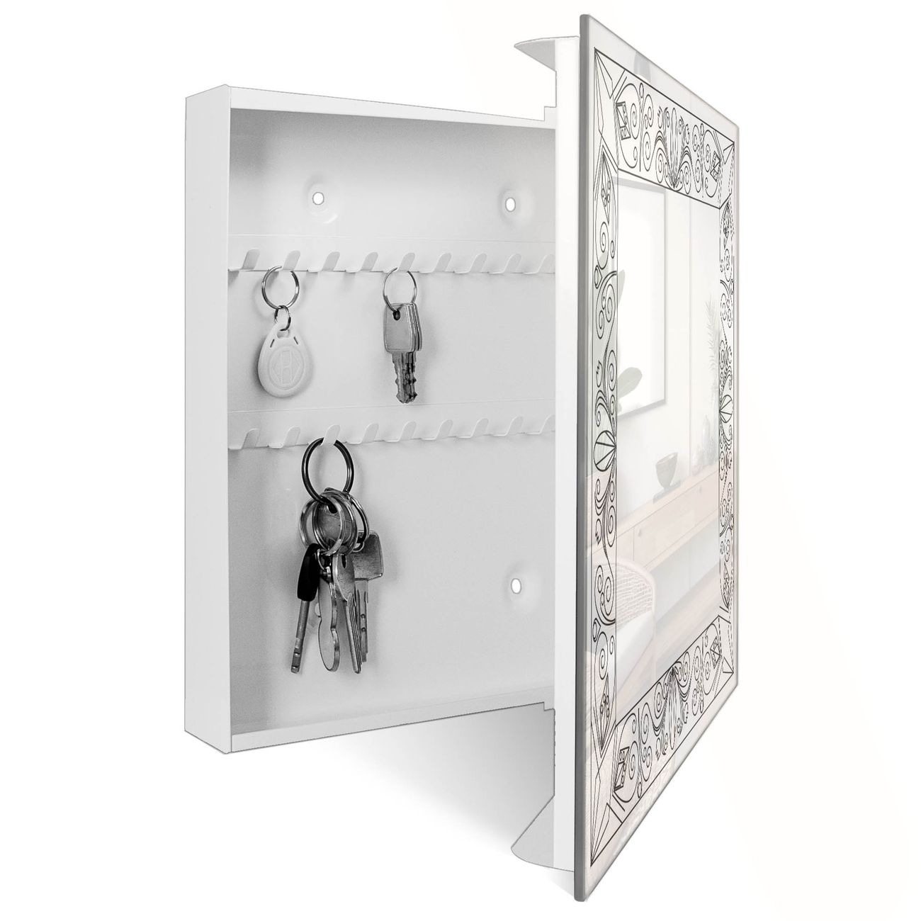 Schlüsselkasten Glas Motiv Blumenornament-Rahmen