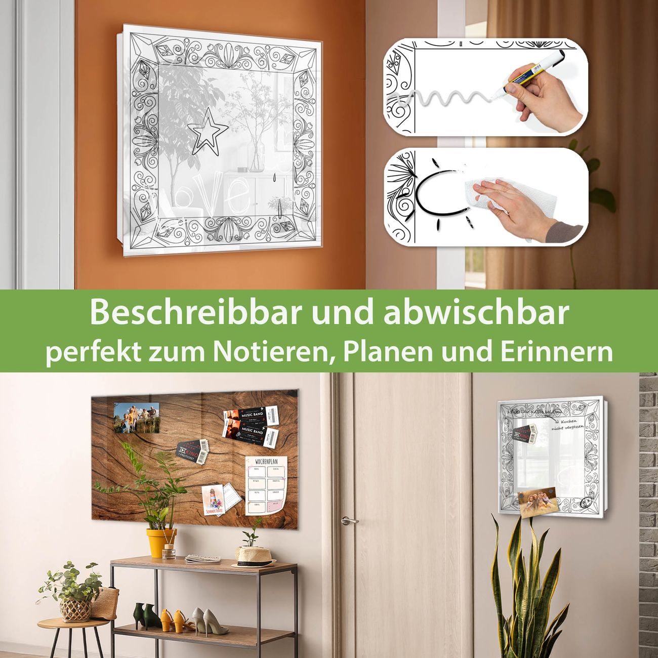 ✅ Magnetisch und mit Kreidestift beschreibbar, gehärtetes Glas, rechts angeschlagene TürOrdnung und Design in einem