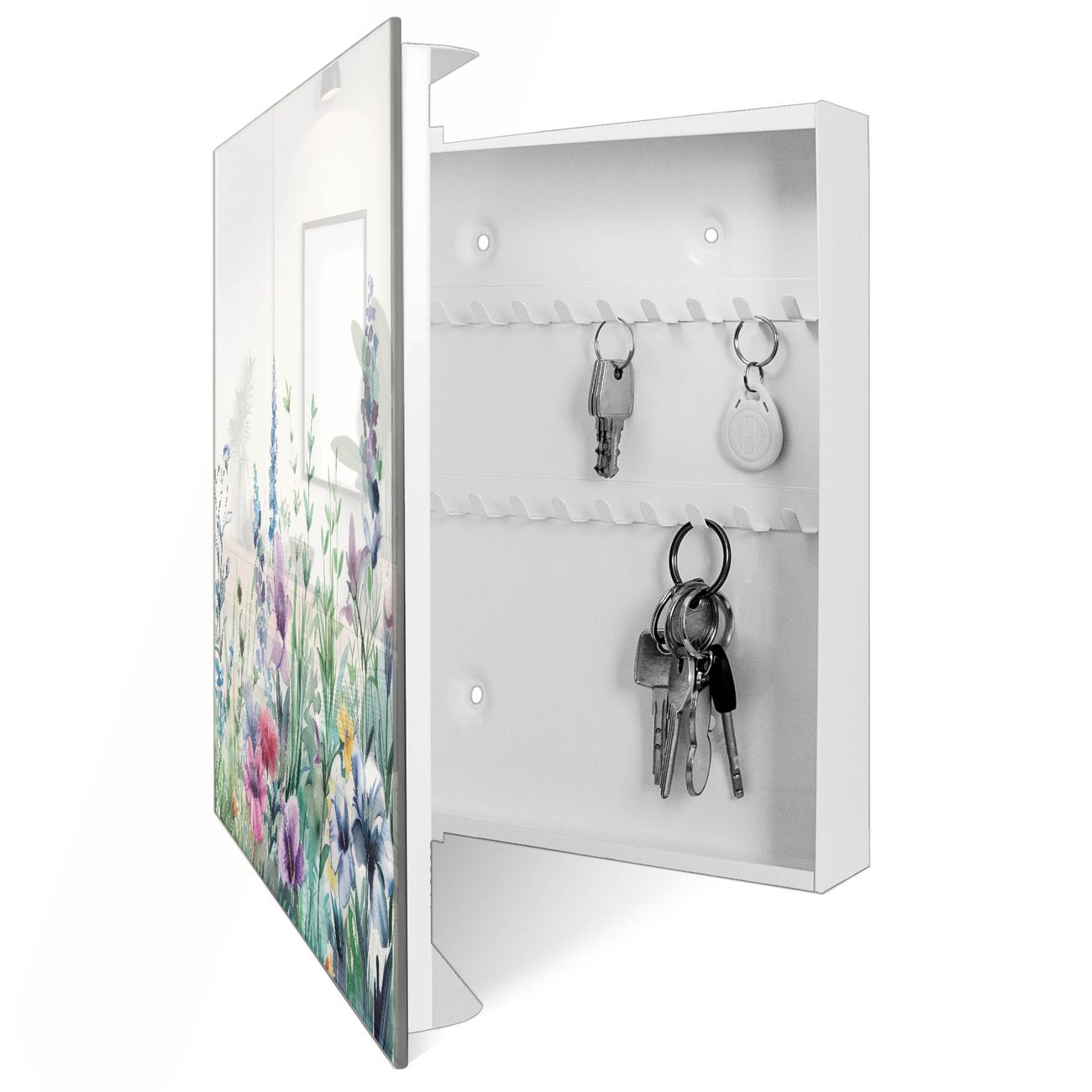 Schlüsselkasten Glas Motiv Blumenwiese in Aquarell