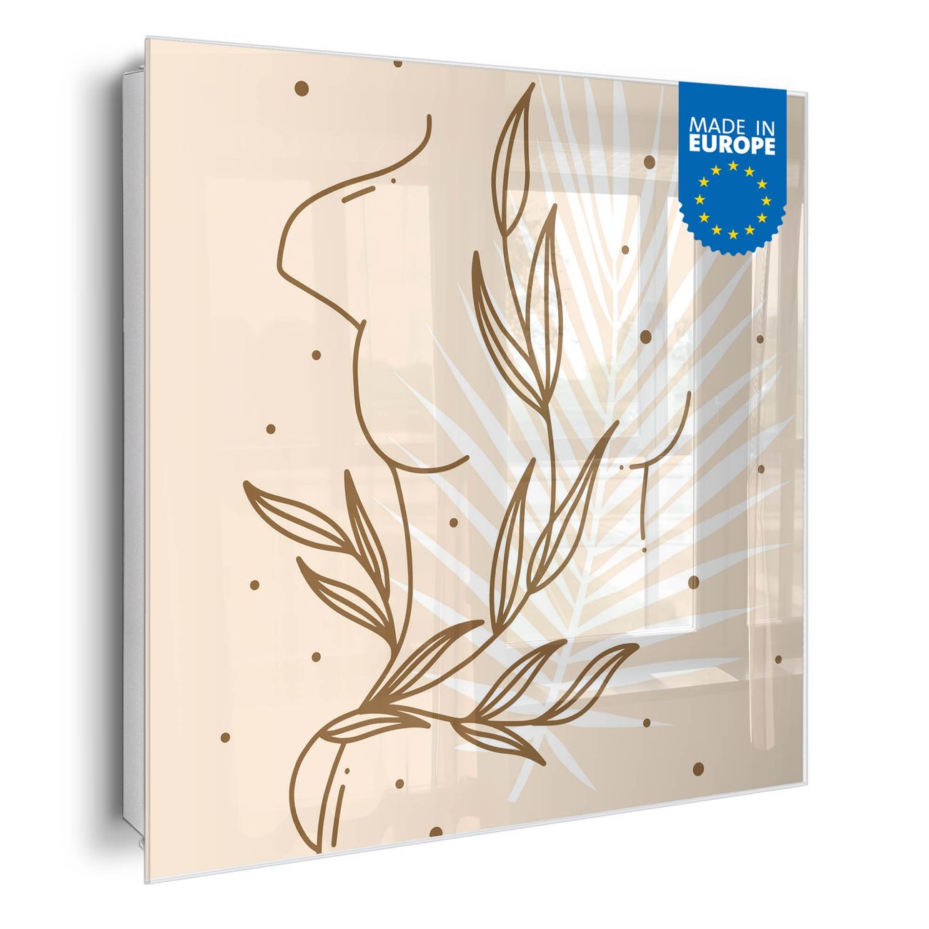 Bringe Ordnung und Eleganz in deinen Eingangsbereich mit dem banjado Schlüsselkasten Motiv Motiv Botanische Linienkunst. Die moderne Schlüsselbox kombiniert funktionales Design mit hochwertiger Verarbeitung und wird so zu einem echten Hingucker in Flur, Büro oder Ferienwohnung. ✅ Stilvolle Schlüsselaufbewahrung mit Glasfront im Motiv Motiv Botanische Linienkunst Der Design-Schlüsselkasten Motiv Motiv Botanische Linienkunst bietet Platz für bis zu 50 Schlüssel, die auf 5 stabilen Reihen mit je 10 Haken übersichtlich verstaut werden. Mit seinen kompakten Maßen von 30 x 30 x 5 cm passt die Schlüsselbox perfekt auch in kleinere Räume. Der weiß lackierte Stahlkorpus mit rechts angeschlagenem Türscharnier harmoniert mit der Glasfront und fügt sich nahtlos in jedes Wohnambiente ein. Ob als Schlüsselorganizer für Zuhause oder als praktische Lösung für Büros, Praxen und Gewerbe, der banjado Schlüsselkasten sorgt für Ordnung und Übersicht. Dank der magnetischen, mit Kreidestiften beschreibbaren Glasfront kannst du Notizen anheften oder Termine direkt auf der Oberfläche festhalten. Die Schlüsselbox Motiv Motiv Botanische Linienkunst zur Wandmontage wird inklusive Befestigungsmaterial geliefert und ist schnell angebracht. So hast du deine Schlüssel jederzeit griffbereit und zugleich stilvoll verstaut. Mit diesem banjado Schlüsselkasten Motiv Motiv Botanische Linienkunst kombinierst du praktische Aufbewahrung mit stilvollem Wohndesign. Ob privat oder geschäftlich, die Schlüsselbox sorgt für mehr Ordnung, Übersicht und ein wohnliches Ambiente.Vorteile im Überblick