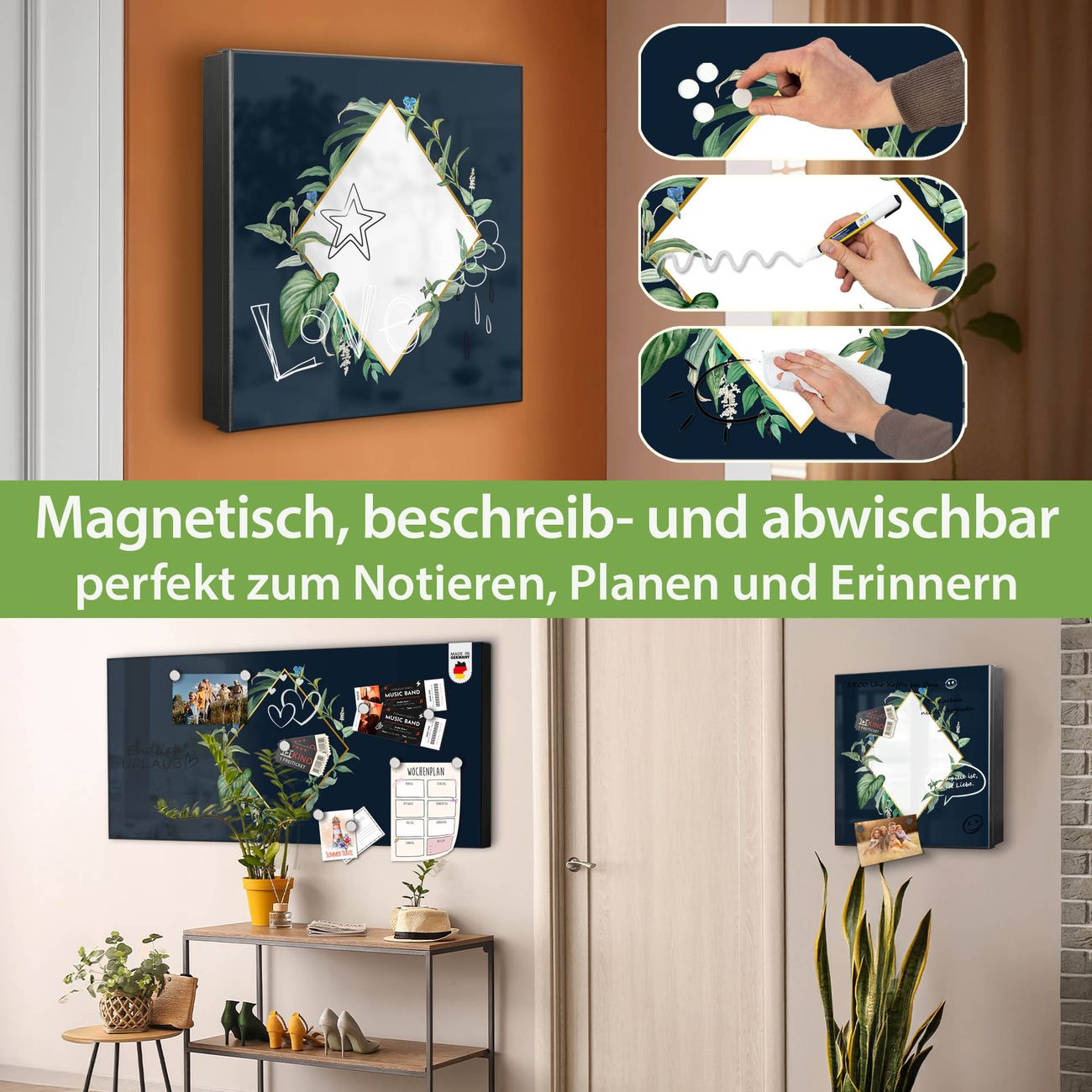 ✅ Magnetisch und mit Kreidestift beschreibbar, rechts angeschlagene TürOrdnung und Design in einem
