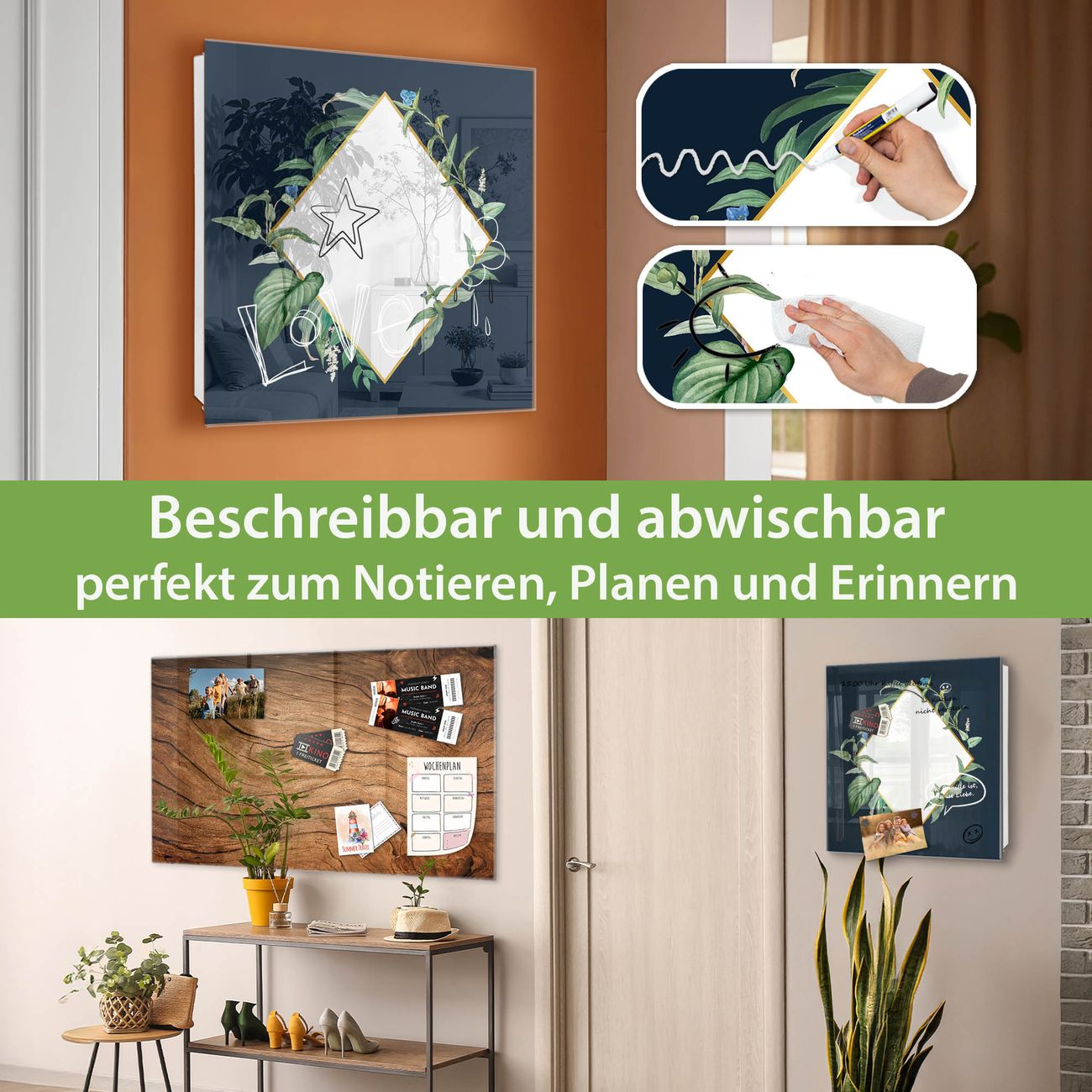 ✅ Magnetisch und mit Kreidestift beschreibbar, gehärtetes Glas, links angeschlagene TürOrdnung und Design in einem