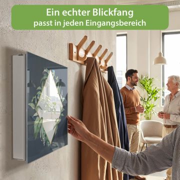 Bringe Ordnung und Eleganz in deinen Eingangsbereich mit dem banjado Schlüsselkasten Motiv Motiv Botanischer Rahmen. Die moderne Schlüsselbox kombiniert funktionales Design mit hochwertiger Verarbeitung und wird so zu einem echten Hingucker in Flur, Büro oder Ferienwohnung. ✅ Stilvolle Schlüsselaufbewahrung mit Glasfront im Motiv Motiv Botanischer Rahmen Der Design-Schlüsselkasten Motiv Motiv Botanischer Rahmen bietet Platz für bis zu 50 Schlüssel, die auf 5 stabilen Reihen mit je 10 Haken übersichtlich verstaut werden. Mit seinen kompakten Maßen von 30 x 30 x 5 cm passt die Schlüsselbox perfekt auch in kleinere Räume. Der weiß lackierte Stahlkorpus mit rechts angeschlagenem Türscharnier harmoniert mit der Glasfront und fügt sich nahtlos in jedes Wohnambiente ein. Ob als Schlüsselorganizer für Zuhause oder als praktische Lösung für Büros, Praxen und Gewerbe, der banjado Schlüsselkasten sorgt für Ordnung und Übersicht. Dank der magnetischen, mit Kreidestiften beschreibbaren Glasfront kannst du Notizen anheften oder Termine direkt auf der Oberfläche festhalten. Die Schlüsselbox Motiv Motiv Botanischer Rahmen zur Wandmontage wird inklusive Befestigungsmaterial geliefert und ist schnell angebracht. So hast du deine Schlüssel jederzeit griffbereit und zugleich stilvoll verstaut. Mit diesem banjado Schlüsselkasten Motiv Motiv Botanischer Rahmen kombinierst du praktische Aufbewahrung mit stilvollem Wohndesign. Ob privat oder geschäftlich, die Schlüsselbox sorgt für mehr Ordnung, Übersicht und ein wohnliches Ambiente.Vorteile im Überblick