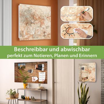 Bringe Ordnung und Eleganz in deinen Eingangsbereich mit dem banjado Schlüsselkasten Motiv Brauner Marmor Struktur. Die moderne Schlüsselbox kombiniert funktionales Design mit hochwertiger Verarbeitung und wird so zu einem echten Hingucker in Flur, Büro oder Ferienwohnung. ✅ Stilvolle Schlüsselaufbewahrung mit Glasfront im Motiv Motiv Brauner Marmor Struktur Der Design-Schlüsselkasten Motiv Brauner Marmor Struktur bietet Platz für bis zu 50 Schlüssel, die auf 5 stabilen Reihen mit je 10 Haken übersichtlich verstaut werden. Mit seinen kompakten Maßen von 30 x 30 x 5 cm passt die Schlüsselbox perfekt auch in kleinere Räume. Der weiß lackierte Stahlkorpus mit rechts angeschlagenem Türscharnier harmoniert mit der Glasfront und fügt sich nahtlos in jedes Wohnambiente ein. Ob als Schlüsselorganizer für Zuhause oder als praktische Lösung für Büros, Praxen und Gewerbe, der banjado Schlüsselkasten sorgt für Ordnung und Übersicht. Dank der magnetischen, mit Kreidestiften beschreibbaren Glasfront kannst du Notizen anheften oder Termine direkt auf der Oberfläche festhalten. Die Schlüsselbox Motiv Brauner Marmor Struktur zur Wandmontage wird inklusive Befestigungsmaterial geliefert und ist schnell angebracht. So hast du deine Schlüssel jederzeit griffbereit und zugleich stilvoll verstaut. Mit diesem banjado Schlüsselkasten Motiv Brauner Marmor Struktur kombinierst du praktische Aufbewahrung mit stilvollem Wohndesign. Ob privat oder geschäftlich, die Schlüsselbox sorgt für mehr Ordnung, Übersicht und ein wohnliches Ambiente.Vorteile im Überblick