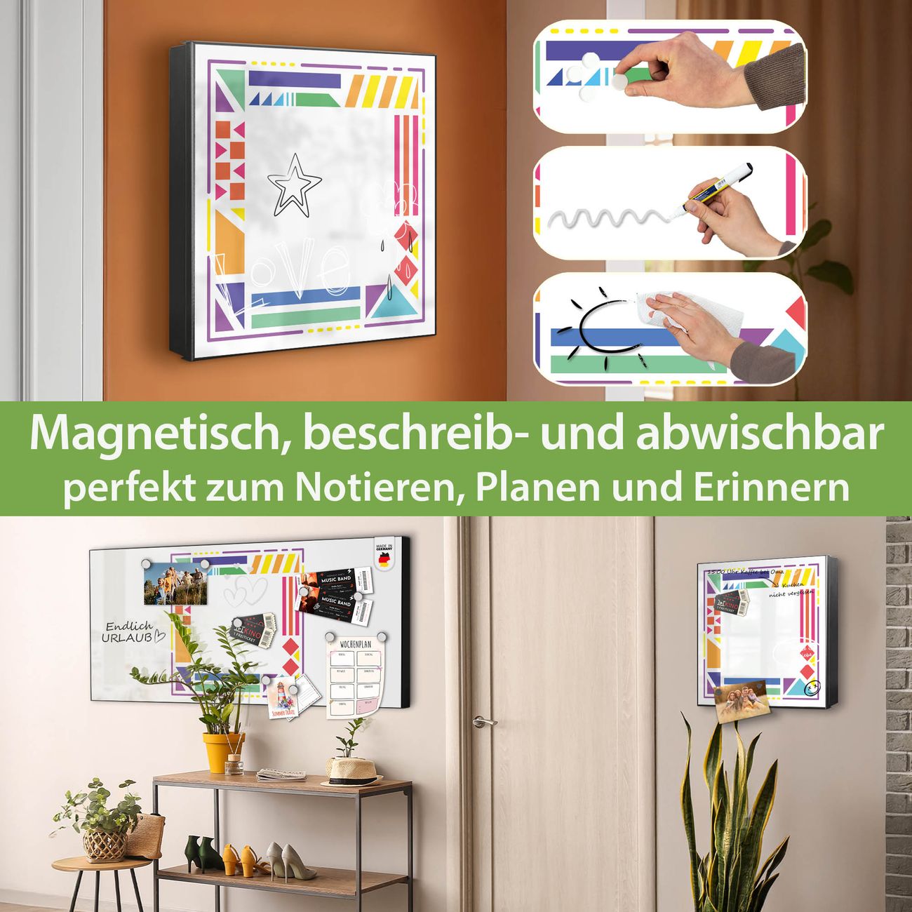 ✅ Magnetisch und mit Kreidestift beschreibbar, links angeschlagene TürOrdnung und Design in einem