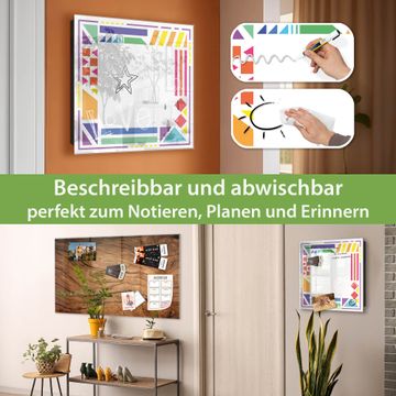 Bringe Ordnung und Eleganz in deinen Eingangsbereich mit dem banjado Schlüsselkasten Motiv Motiv Bunter Geometrischer Rahmen 2. Die moderne Schlüsselbox kombiniert funktionales Design mit hochwertiger Verarbeitung und wird so zu einem echten Hingucker in Flur, Büro oder Ferienwohnung. ✅ Stilvolle Schlüsselaufbewahrung mit Glasfront im Motiv Motiv Bunter Geometrischer Rahmen 2 Der Design-Schlüsselkasten Motiv Motiv Bunter Geometrischer Rahmen 2 bietet Platz für bis zu 50 Schlüssel, die auf 5 stabilen Reihen mit je 10 Haken übersichtlich verstaut werden. Mit seinen kompakten Maßen von 30 x 30 x 5 cm passt die Schlüsselbox perfekt auch in kleinere Räume. Der schwarz lackierte Stahlkorpus mit rechts angeschlagenem Türscharnier harmoniert mit der Glasfront und fügt sich nahtlos in jedes Wohnambiente ein. Ob als Schlüsselorganizer für Zuhause oder als praktische Lösung für Büros, Praxen und Gewerbe, der banjado Schlüsselkasten sorgt für Ordnung und Übersicht. Dank der magnetischen, mit Kreidestiften beschreibbaren Glasfront kannst du Notizen anheften oder Termine direkt auf der Oberfläche festhalten. Die Schlüsselbox Motiv Motiv Bunter Geometrischer Rahmen 2 zur Wandmontage wird inklusive Befestigungsmaterial geliefert und ist schnell angebracht. So hast du deine Schlüssel jederzeit griffbereit und zugleich stilvoll verstaut. Mit diesem banjado Schlüsselkasten Motiv Motiv Bunter Geometrischer Rahmen 2 kombinierst du praktische Aufbewahrung mit stilvollem Wohndesign. Ob privat oder geschäftlich, die Schlüsselbox sorgt für mehr Ordnung, Übersicht und ein wohnliches Ambiente.Vorteile im Überblick