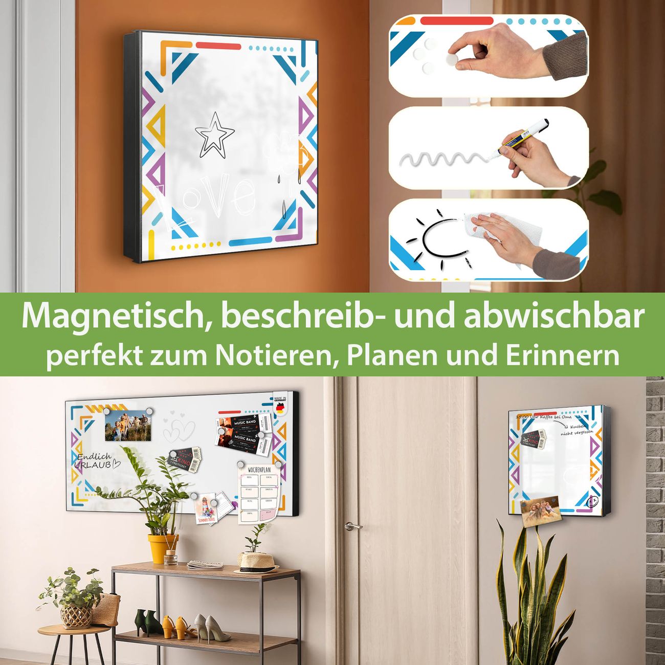 ✅ Magnetisch und mit Kreidestift beschreibbar, links angeschlagene TürOrdnung und Design in einem