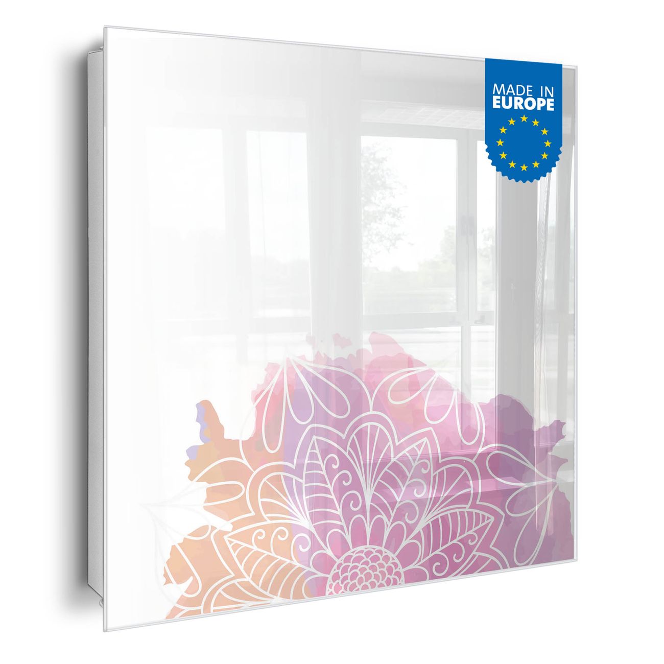 Bringe Ordnung und Eleganz in deinen Eingangsbereich mit dem banjado Schlüsselkasten Motiv Motiv Buntes Mandala. Die moderne Schlüsselbox kombiniert funktionales Design mit hochwertiger Verarbeitung und wird so zu einem echten Hingucker in Flur, Büro oder Ferienwohnung. ✅ Stilvolle Schlüsselaufbewahrung mit Glasfront im Motiv Motiv Buntes Mandala Der Design-Schlüsselkasten Motiv Motiv Buntes Mandala bietet Platz für bis zu 50 Schlüssel, die auf 5 stabilen Reihen mit je 10 Haken übersichtlich verstaut werden. Mit seinen kompakten Maßen von 30 x 30 x 5 cm passt die Schlüsselbox perfekt auch in kleinere Räume. Der weiß lackierte Stahlkorpus mit rechts angeschlagenem Türscharnier harmoniert mit der Glasfront und fügt sich nahtlos in jedes Wohnambiente ein. Ob als Schlüsselorganizer für Zuhause oder als praktische Lösung für Büros, Praxen und Gewerbe, der banjado Schlüsselkasten sorgt für Ordnung und Übersicht. Dank der magnetischen, mit Kreidestiften beschreibbaren Glasfront kannst du Notizen anheften oder Termine direkt auf der Oberfläche festhalten. Die Schlüsselbox Motiv Motiv Buntes Mandala zur Wandmontage wird inklusive Befestigungsmaterial geliefert und ist schnell angebracht. So hast du deine Schlüssel jederzeit griffbereit und zugleich stilvoll verstaut. Mit diesem banjado Schlüsselkasten Motiv Motiv Buntes Mandala kombinierst du praktische Aufbewahrung mit stilvollem Wohndesign. Ob privat oder geschäftlich, die Schlüsselbox sorgt für mehr Ordnung, Übersicht und ein wohnliches Ambiente.Vorteile im Überblick