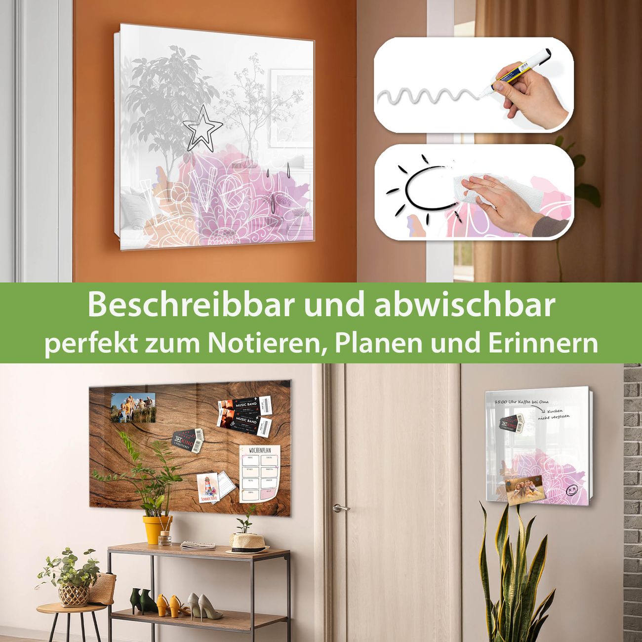 ✅ Magnetisch und mit Kreidestift beschreibbar, gehärtetes Glas, rechts angeschlagene TürOrdnung und Design in einem