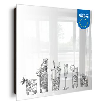 Schlüsselkasten Glas Motiv Cocktail Skizzen