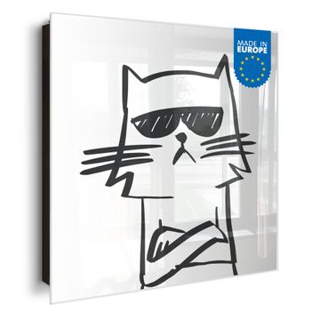 Bringe Ordnung und Eleganz in deinen Eingangsbereich mit dem banjado Schlüsselkasten Motiv Motiv Coole Katze. Die moderne Schlüsselbox kombiniert funktionales Design mit hochwertiger Verarbeitung und wird so zu einem echten Hingucker in Flur, Büro oder Ferienwohnung. ✅ Stilvolle Schlüsselaufbewahrung mit Glasfront im Motiv Motiv Coole Katze Der Design-Schlüsselkasten Motiv Motiv Coole Katze bietet Platz für bis zu 50 Schlüssel, die auf 5 stabilen Reihen mit je 10 Haken übersichtlich verstaut werden. Mit seinen kompakten Maßen von 30 x 30 x 5 cm passt die Schlüsselbox perfekt auch in kleinere Räume. Der schwarz lackierte Stahlkorpus mit rechts angeschlagenem Türscharnier harmoniert mit der Glasfront und fügt sich nahtlos in jedes Wohnambiente ein. Ob als Schlüsselorganizer für Zuhause oder als praktische Lösung für Büros, Praxen und Gewerbe, der banjado Schlüsselkasten sorgt für Ordnung und Übersicht. Dank der magnetischen, mit Kreidestiften beschreibbaren Glasfront kannst du Notizen anheften oder Termine direkt auf der Oberfläche festhalten. Die Schlüsselbox Motiv Motiv Coole Katze zur Wandmontage wird inklusive Befestigungsmaterial geliefert und ist schnell angebracht. So hast du deine Schlüssel jederzeit griffbereit und zugleich stilvoll verstaut. Mit diesem banjado Schlüsselkasten Motiv Motiv Coole Katze kombinierst du praktische Aufbewahrung mit stilvollem Wohndesign. Ob privat oder geschäftlich, die Schlüsselbox sorgt für mehr Ordnung, Übersicht und ein wohnliches Ambiente.Vorteile im Überblick