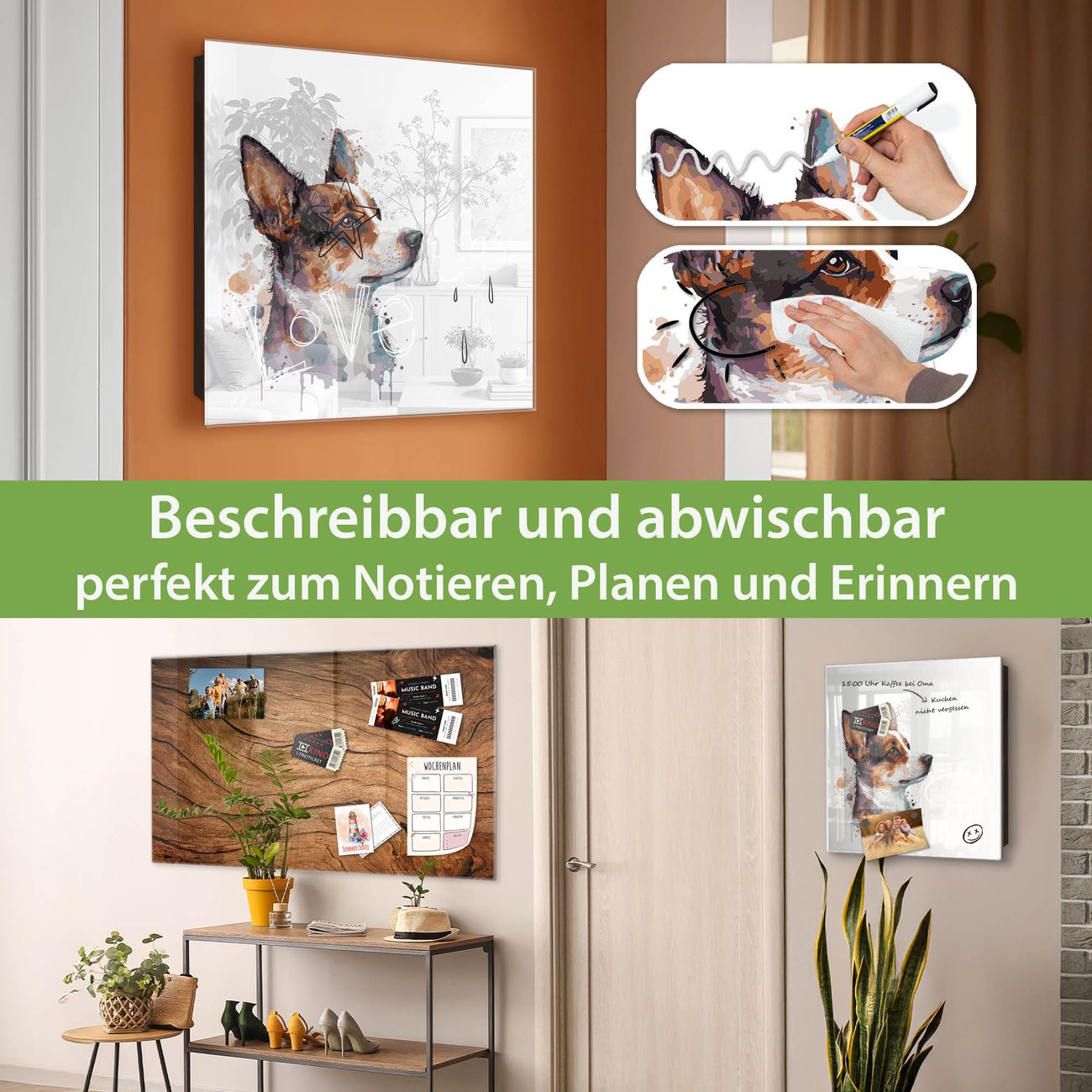 ✅ Magnetisch und mit Kreidestift beschreibbar, gehärtetes Glas, rechts angeschlagene TürOrdnung und Design in einem
