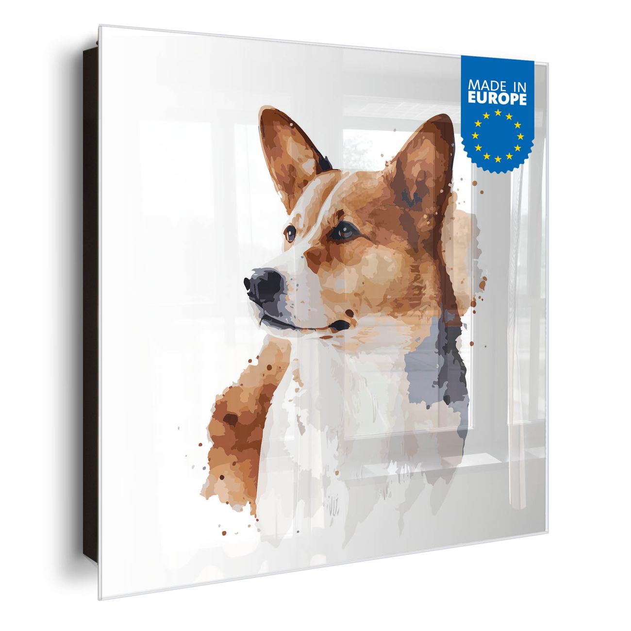 Schlüsselkasten Glas Motiv Corgi Porträt