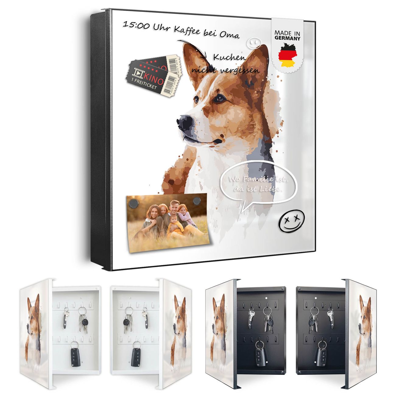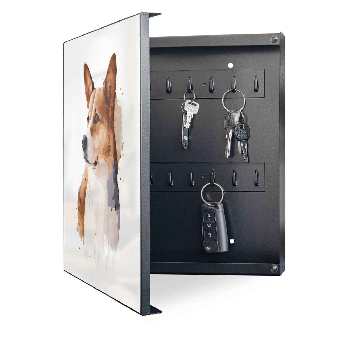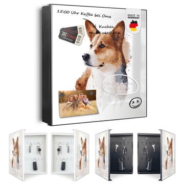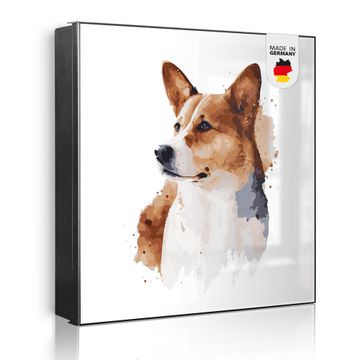 Schlüsselkasten Motiv Corgi Porträt Aquarell