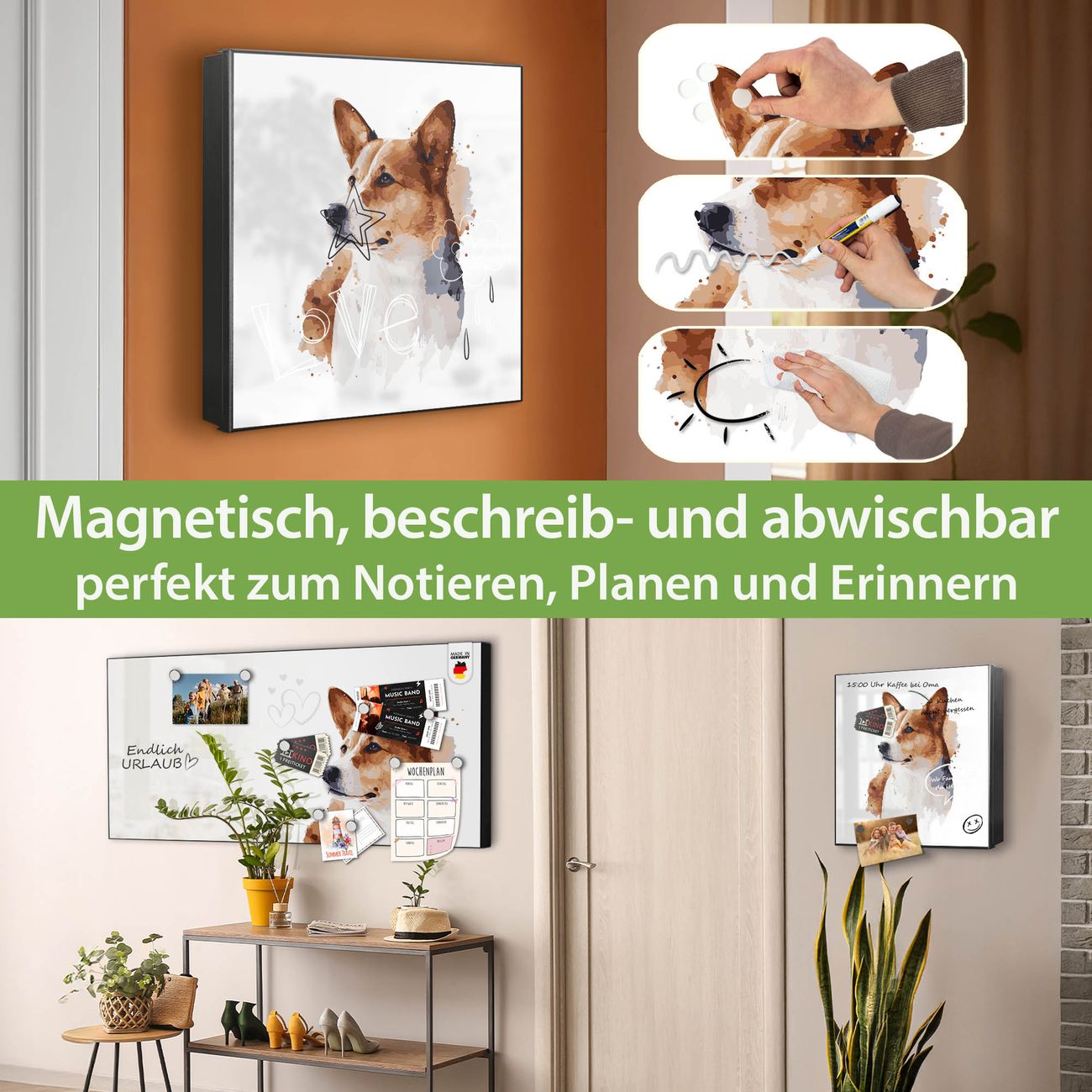 ✅ Magnetisch und mit Kreidestift beschreibbar, links angeschlagene TürOrdnung und Design in einem