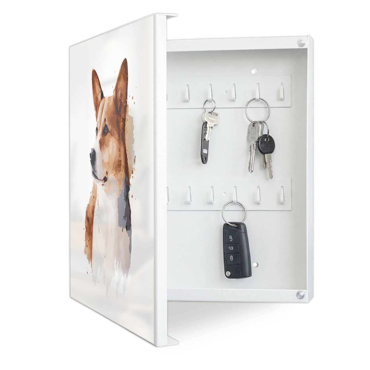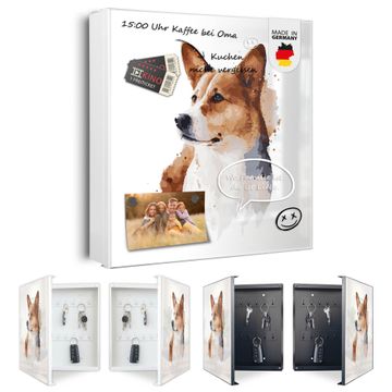 Schlüsselkasten Motiv Corgi Porträt Aquarell
