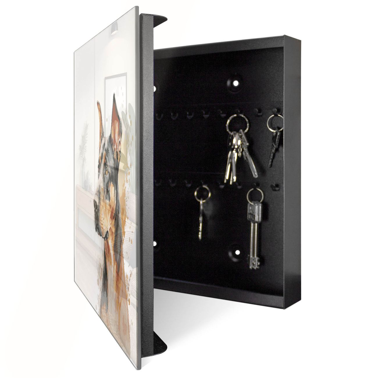 Schlüsselkasten Glas Motiv Dobermann Aquarell