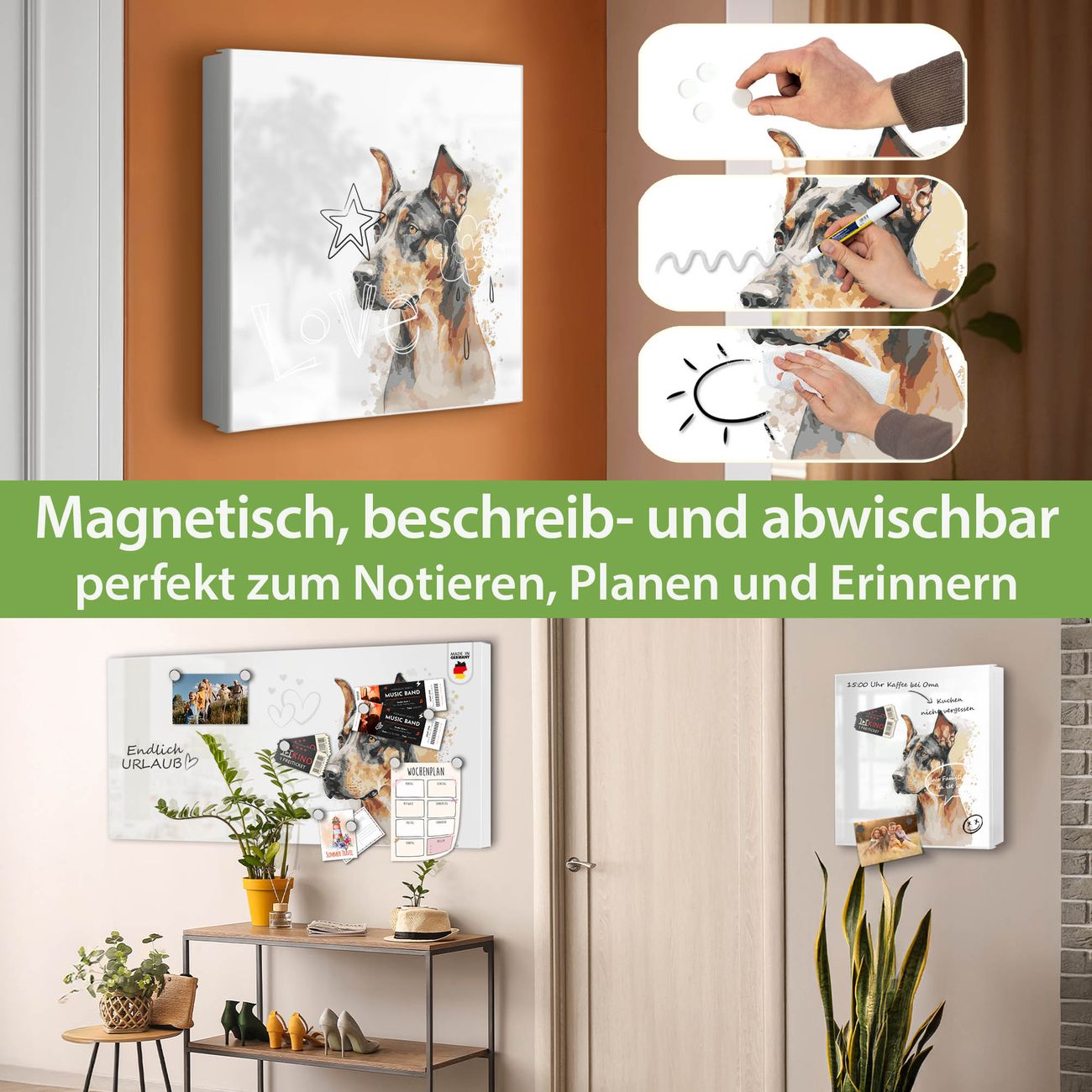 ✅ Magnetisch und mit Kreidestift beschreibbar, rechts angeschlagene TürOrdnung und Design in einem