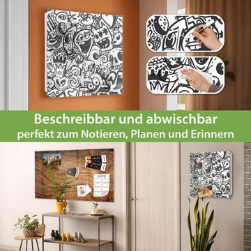 Bringe Ordnung und Eleganz in deinen Eingangsbereich mit dem banjado Schlüsselkasten Motiv Motiv Doodle Chaos. Die moderne Schlüsselbox kombiniert funktionales Design mit hochwertiger Verarbeitung und wird so zu einem echten Hingucker in Flur, Büro oder Ferienwohnung. ✅ Stilvolle Schlüsselaufbewahrung mit Glasfront im Motiv Motiv Doodle Chaos Der Design-Schlüsselkasten Motiv Motiv Doodle Chaos bietet Platz für bis zu 50 Schlüssel, die auf 5 stabilen Reihen mit je 10 Haken übersichtlich verstaut werden. Mit seinen kompakten Maßen von 30 x 30 x 5 cm passt die Schlüsselbox perfekt auch in kleinere Räume. Der weiß lackierte Stahlkorpus mit rechts angeschlagenem Türscharnier harmoniert mit der Glasfront und fügt sich nahtlos in jedes Wohnambiente ein. Ob als Schlüsselorganizer für Zuhause oder als praktische Lösung für Büros, Praxen und Gewerbe, der banjado Schlüsselkasten sorgt für Ordnung und Übersicht. Dank der magnetischen, mit Kreidestiften beschreibbaren Glasfront kannst du Notizen anheften oder Termine direkt auf der Oberfläche festhalten. Die Schlüsselbox Motiv Motiv Doodle Chaos zur Wandmontage wird inklusive Befestigungsmaterial geliefert und ist schnell angebracht. So hast du deine Schlüssel jederzeit griffbereit und zugleich stilvoll verstaut. Mit diesem banjado Schlüsselkasten Motiv Motiv Doodle Chaos kombinierst du praktische Aufbewahrung mit stilvollem Wohndesign. Ob privat oder geschäftlich, die Schlüsselbox sorgt für mehr Ordnung, Übersicht und ein wohnliches Ambiente.Vorteile im Überblick